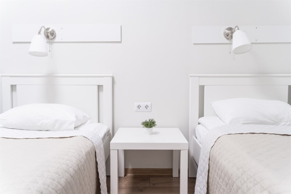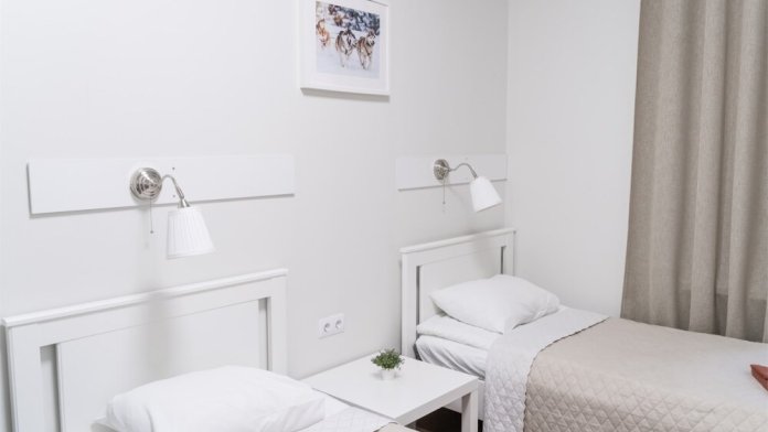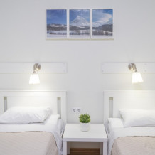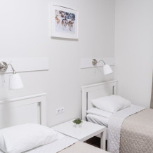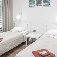 Уютный номер меблирован удобными односпальными кроватями. Номер постоянно отапливается. Гости пользуются общей ванной комнатой, рассчитанной на 2 номера. Также в распоряжении гостей кухня с зоной отдыха.