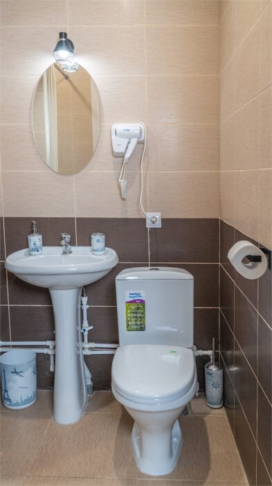 К Вашим услугам бесплатные туалетные принадлежности, предоставляется комплект полотенец. В номере также: тумбочки для каждого гостя, бра и розетки у каждой кровати, бесплатный интернет и телевидение.