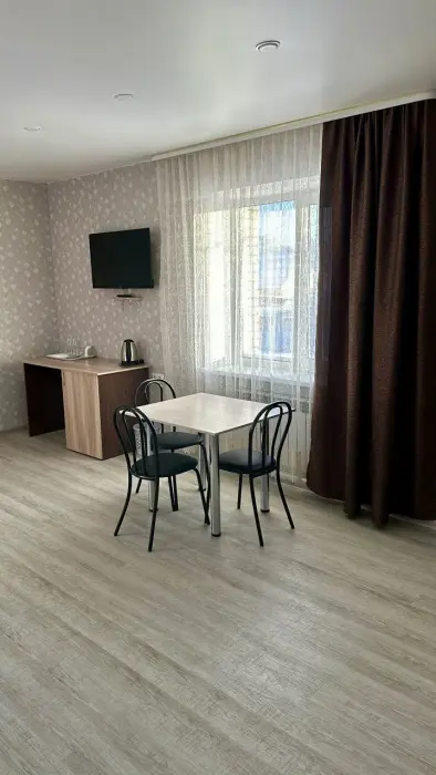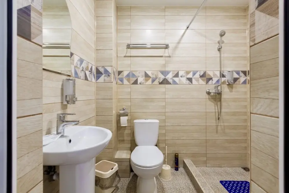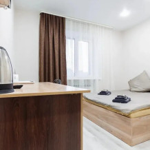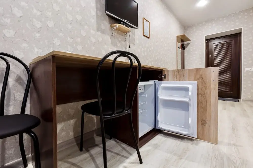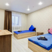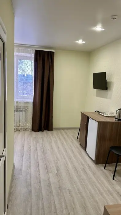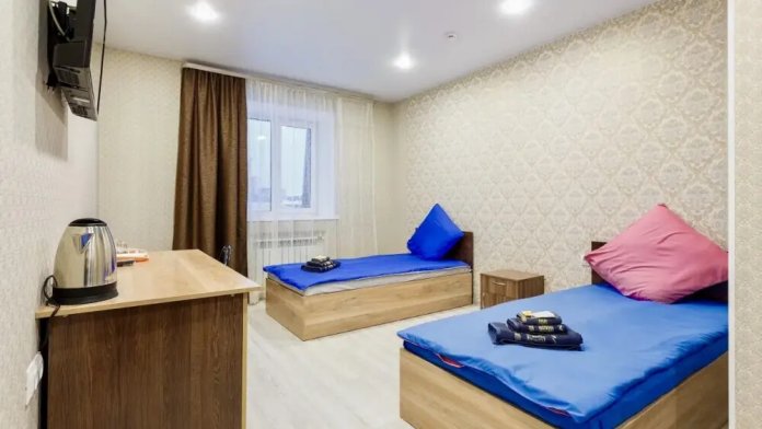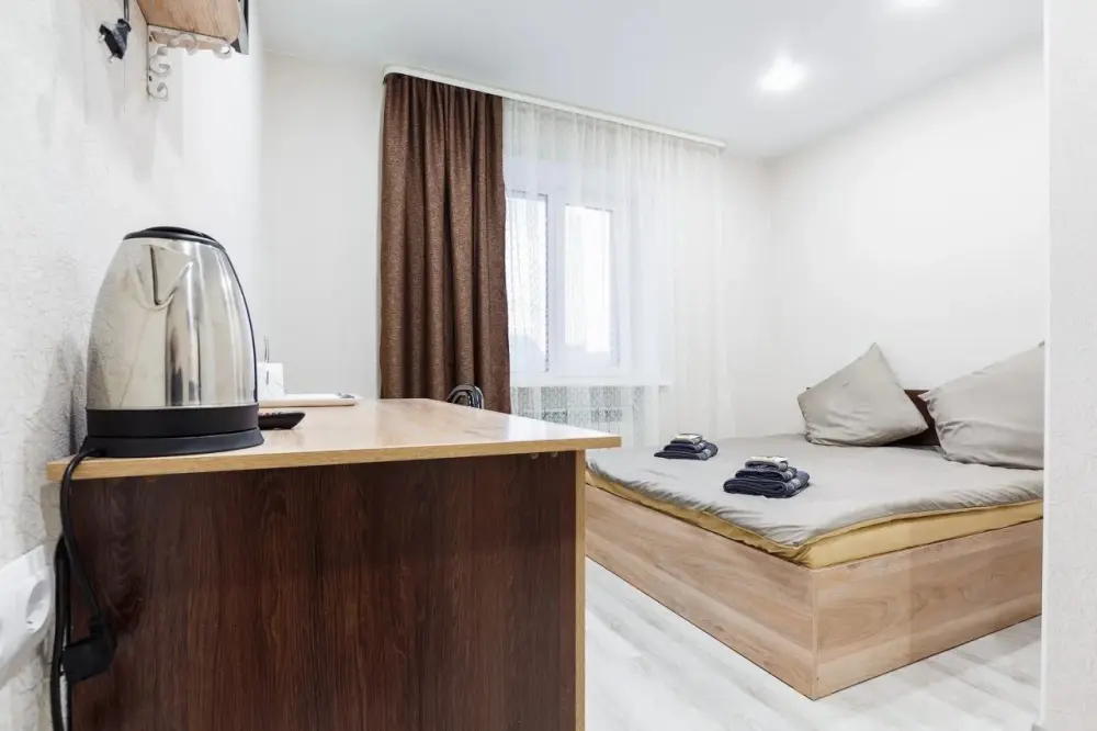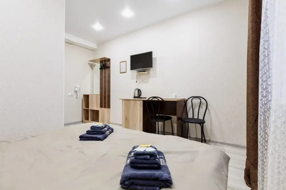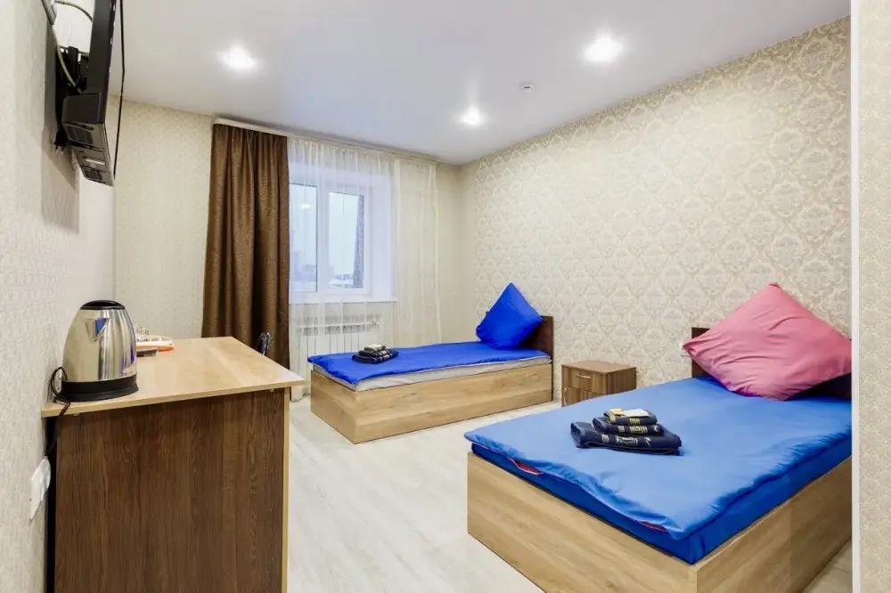 Для проживания предоставляются комнаты с односпальными, двуспальными или раздельными кроватями. В каждой из них есть отдельный санузел, удобная мебель и телевизор, электрический чайник, мини-холодильник, полки для хранения вещей.