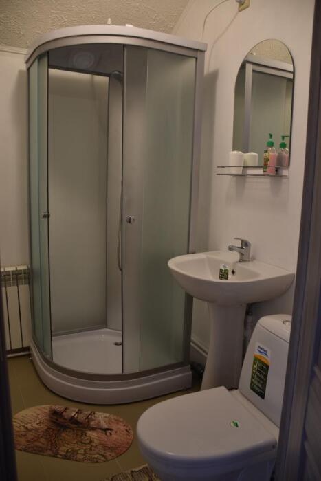 Комната с двумя отдельными кроватями на 2 этаже 2-х этажного дома. В комнате свои удобства (душ, унитаз, раковина для умывания), телевизор. На этаже есть гостевая кухня с холодильником, микроволновкой, плитой, посудой для приготовления и приема пищи.