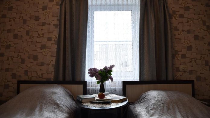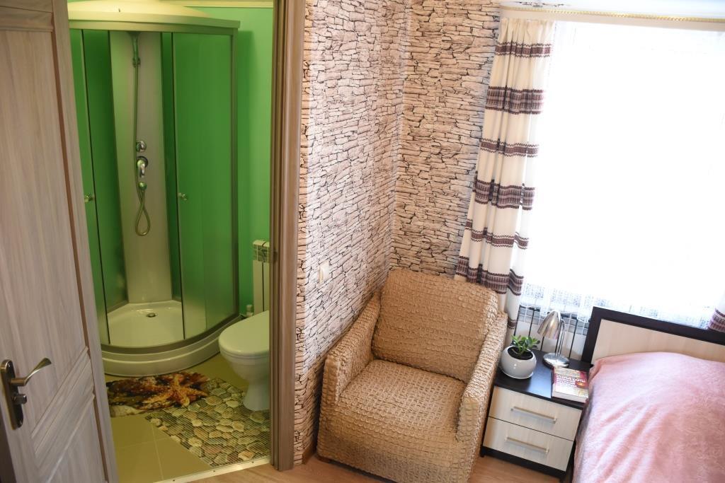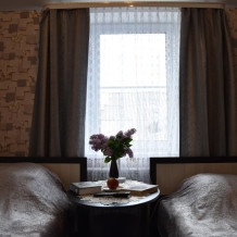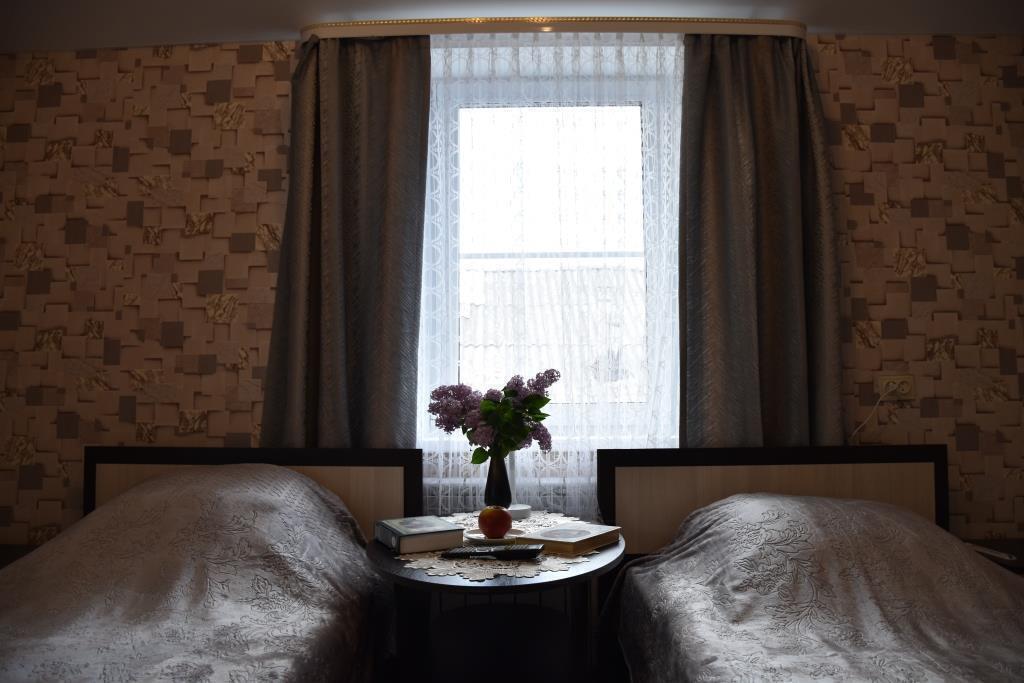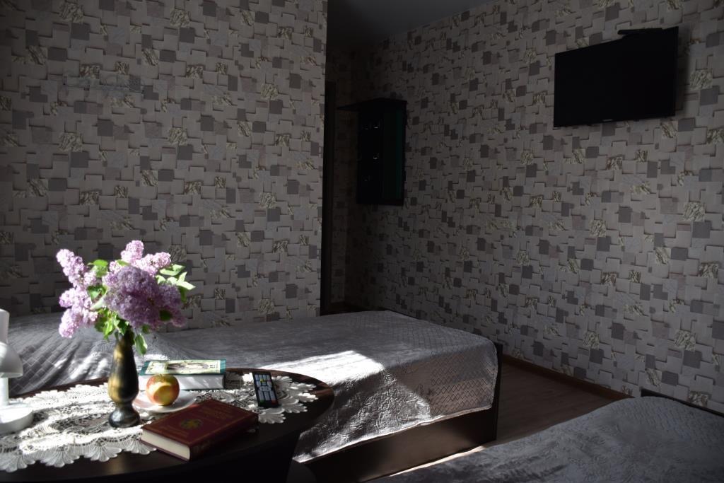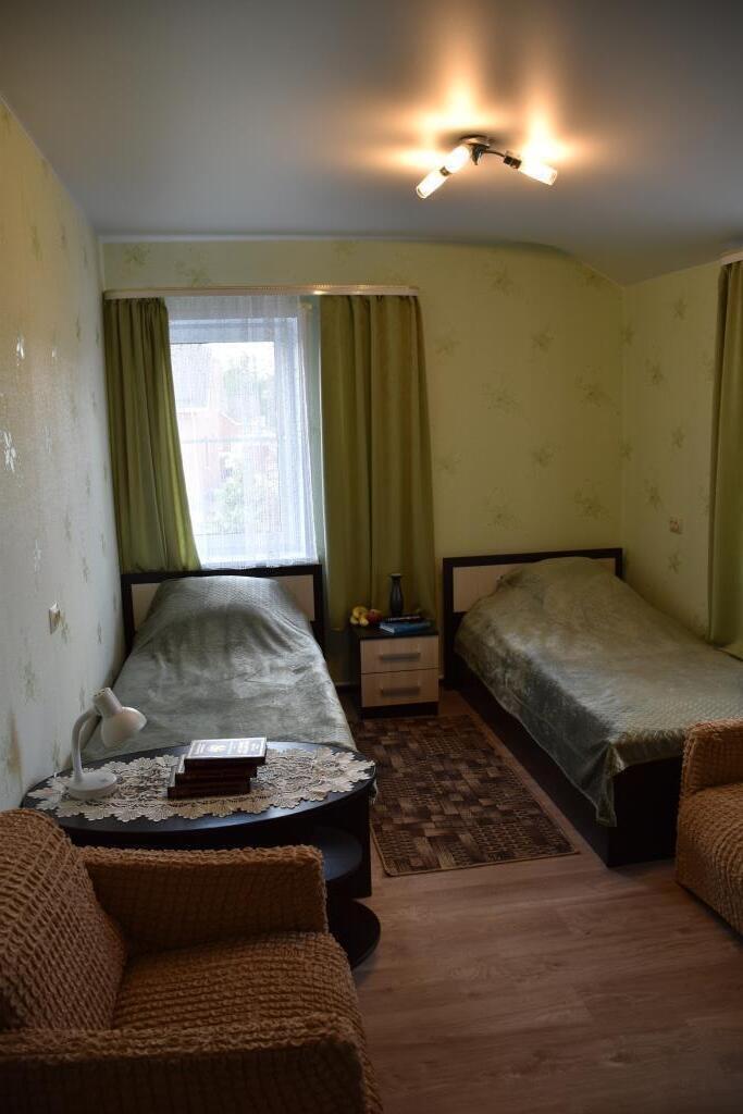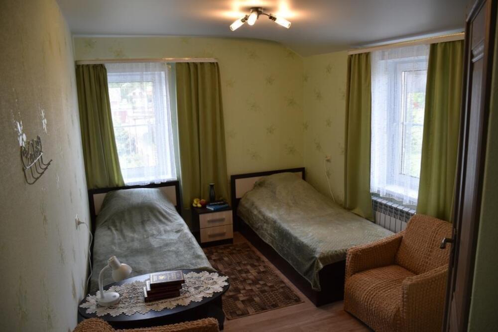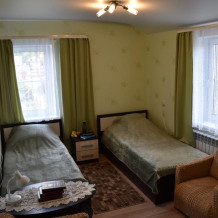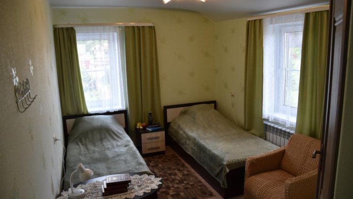 Комната с двумя отдельными кроватями находится на 2 этаже 2-х этажного дома. Имеется выход на небольшую лоджию. В комнате свои удобства (душ, унитаз, раковина для умывания), телевизор. На этаже есть гостевая кухня с холодильником, микроволновкой, плитой, посудой для приготовления и приема пищи.