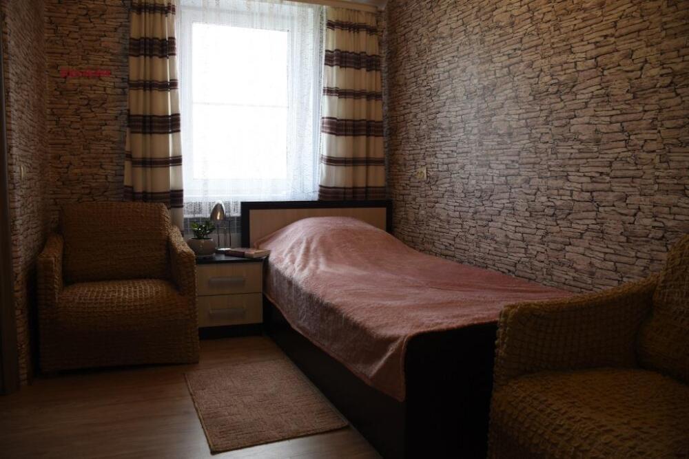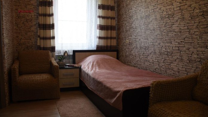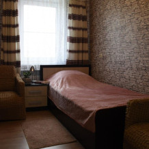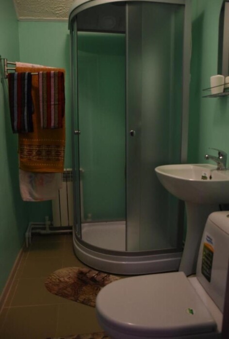Одноместная комната на 2 этаже 2-х этажного дома. В комнате свои удобства (душ, унитаз, раковина для умывания), телевизор. На этаже гостевая кухня с холодильником, микроволновкой, плитой, посудой для приготовления и приема пищи