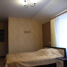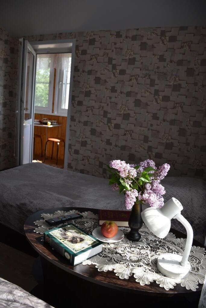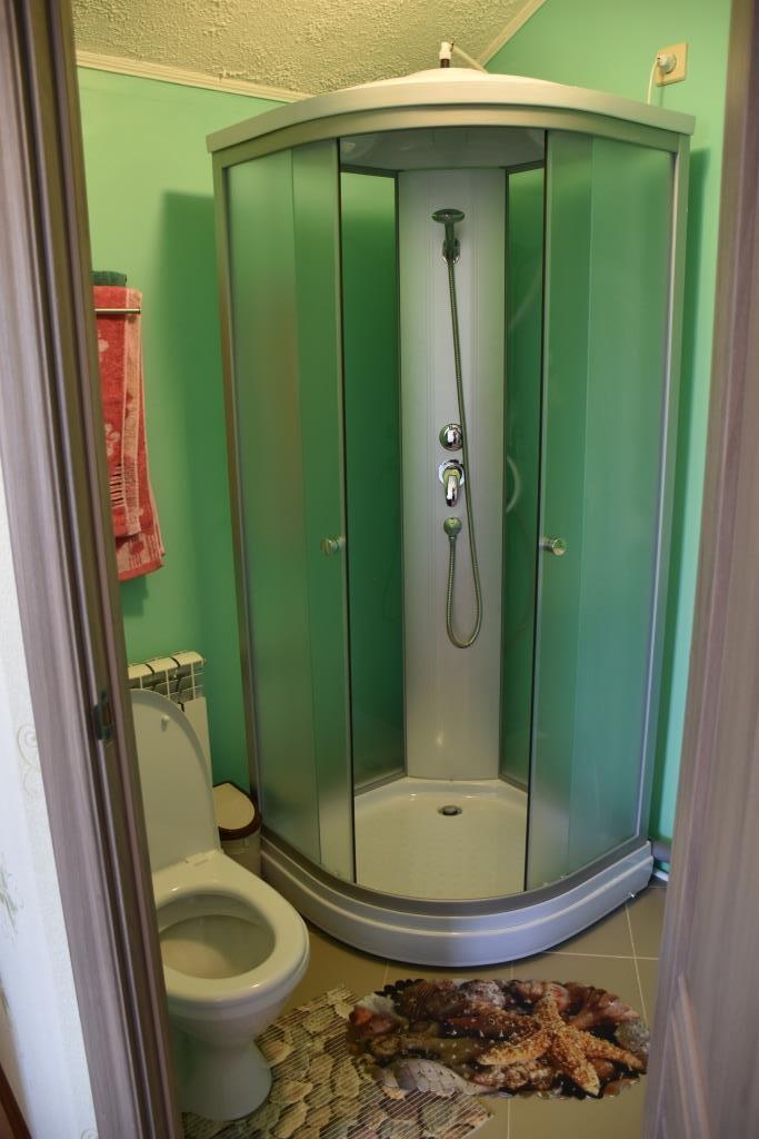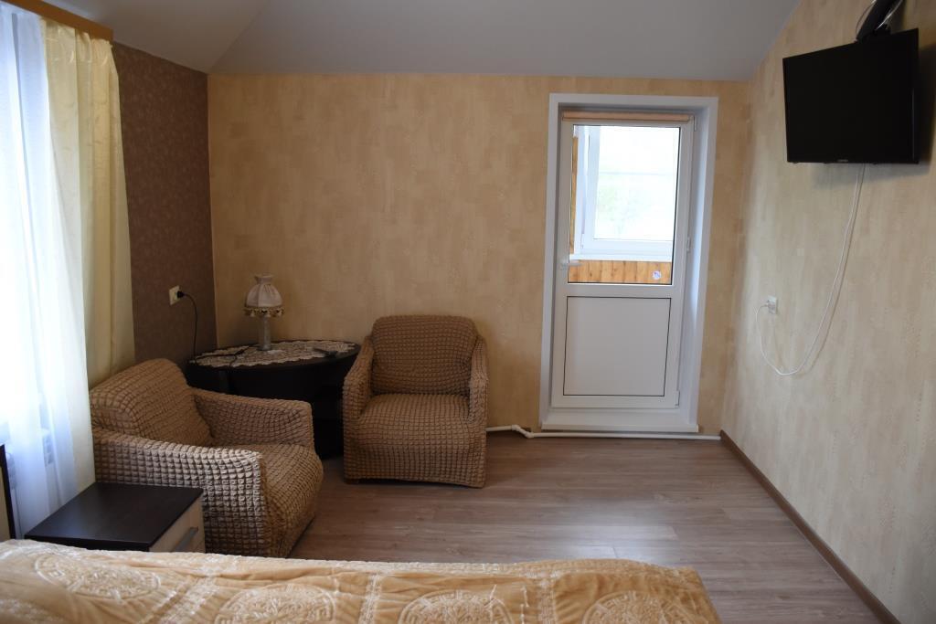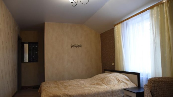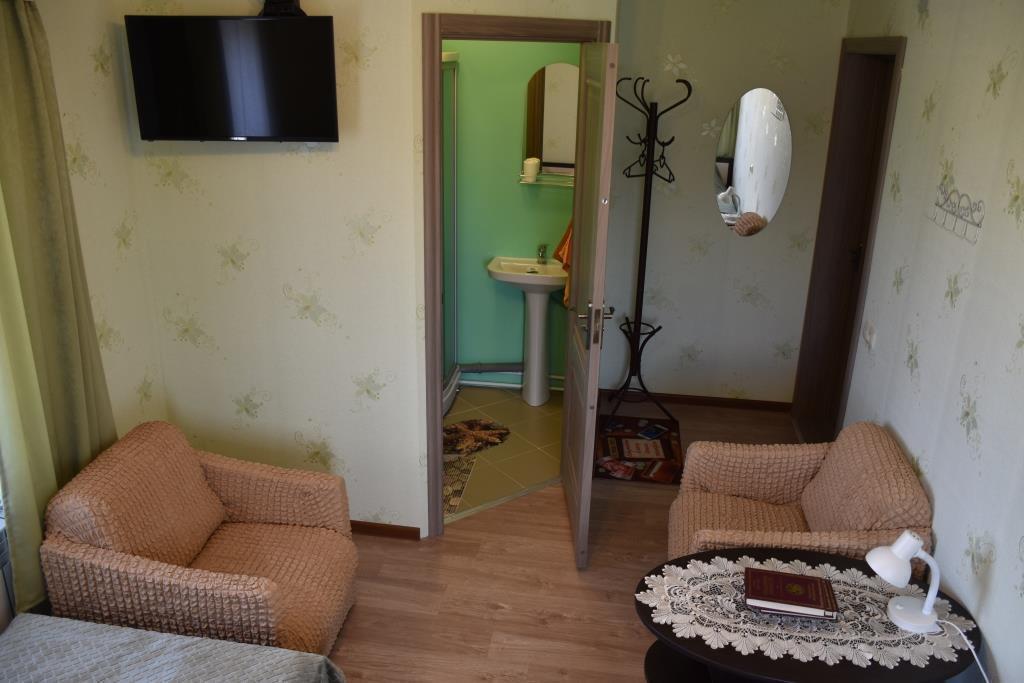 Комната с двуспальной кроватью находится на 2 этаже 2-х этажного дома. Есть выход на небольшую лоджию. В комнате свои удобства (душ, унитаз, раковина для умывания), телевизор. На этаже есть гостевая кухня с холодильником, микроволновкой, плитой, посудой для приготовления и приема пищи.