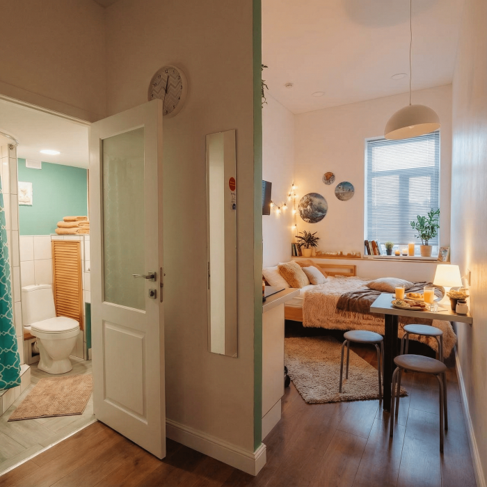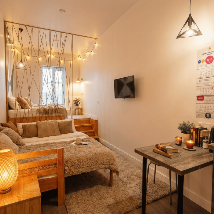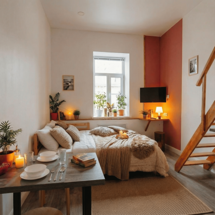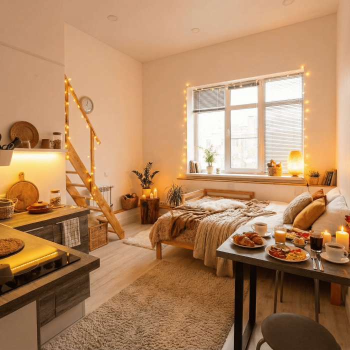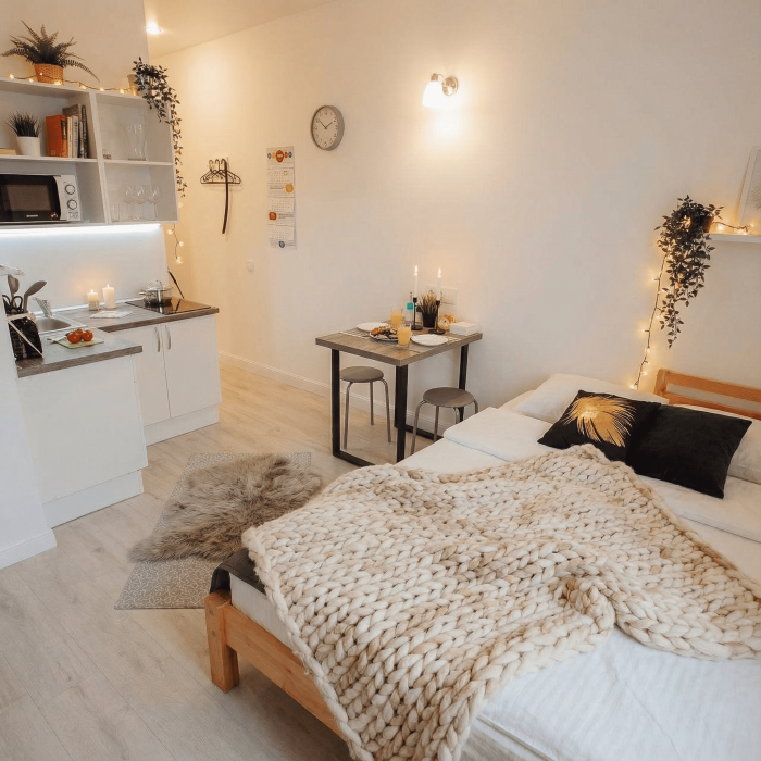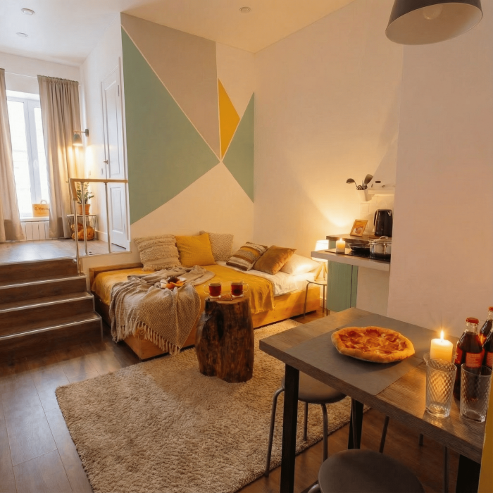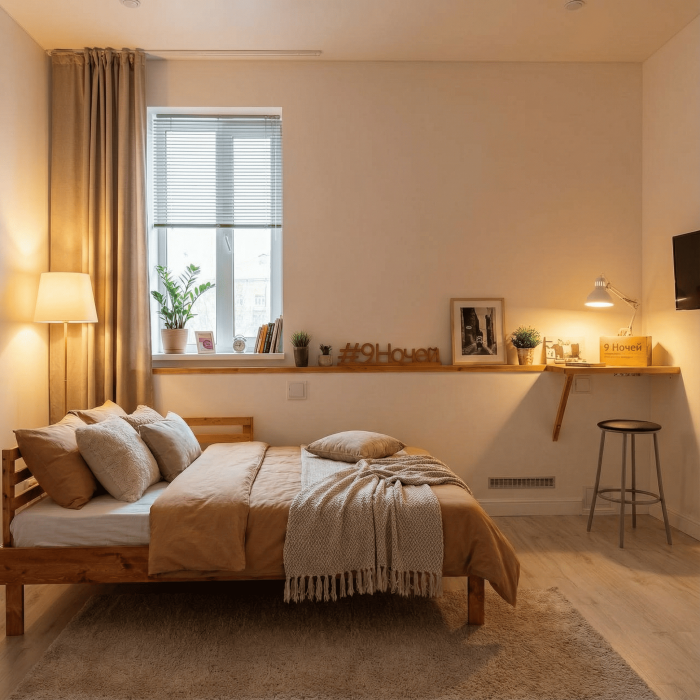 Апартаменты включают в себя клининг, современную мебель, бытовую технику, свежее бельё и посуду. Гигиенические принадлежности и полотенца предоставляются каждому гостю.