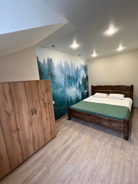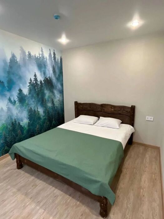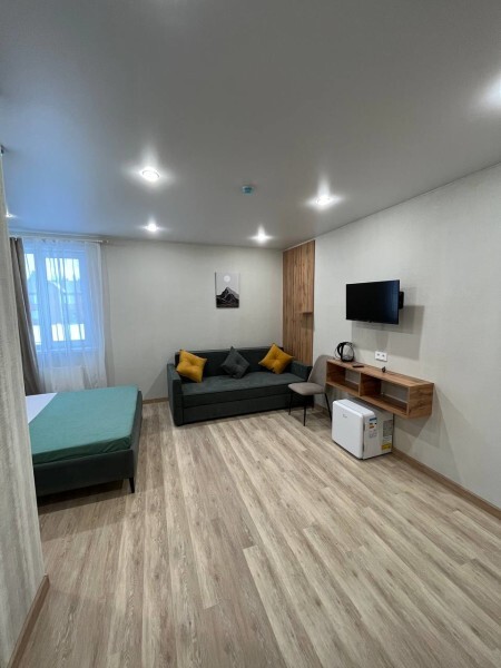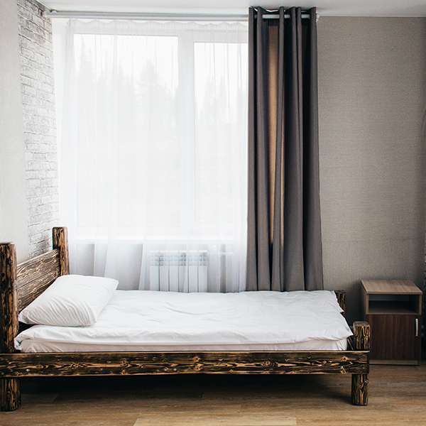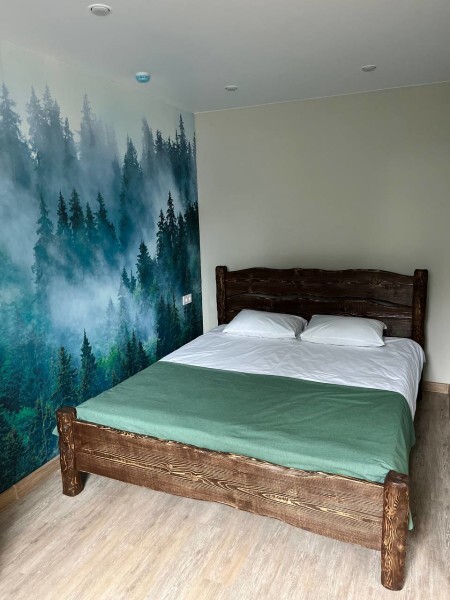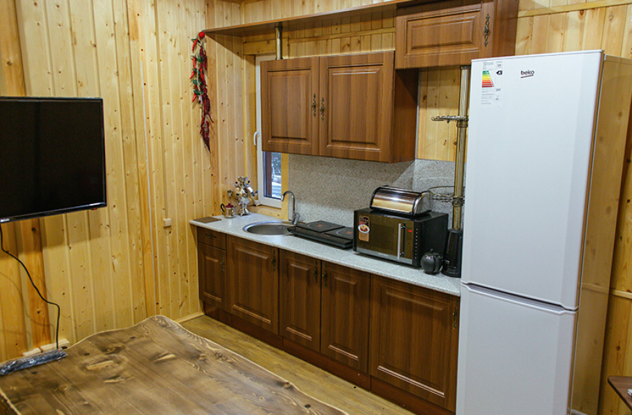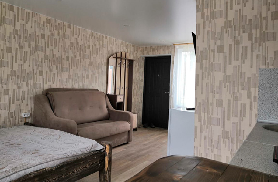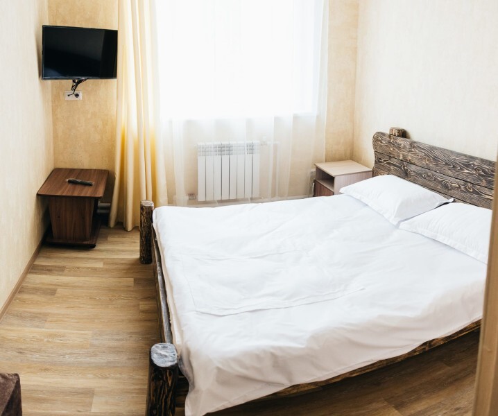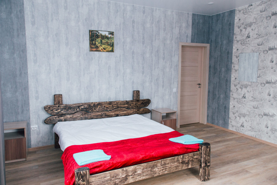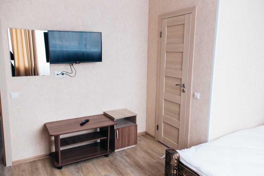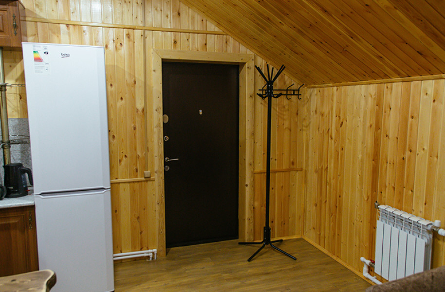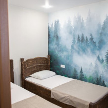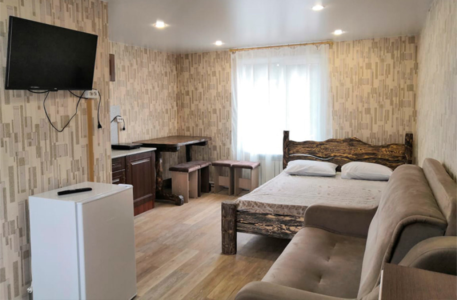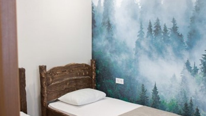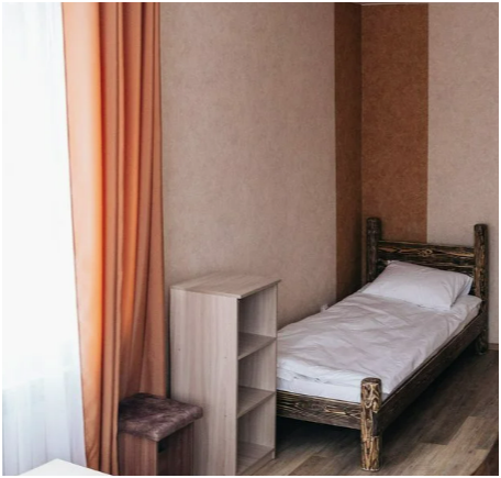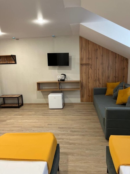 Просторный номер с двумя кроватями ручной работы и ортопедическими матрасами. В номере есть стол, вешалка, телевизор и чайник. Общая кухня на этаже.