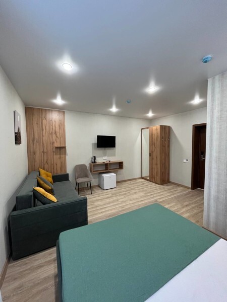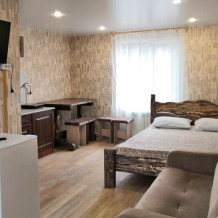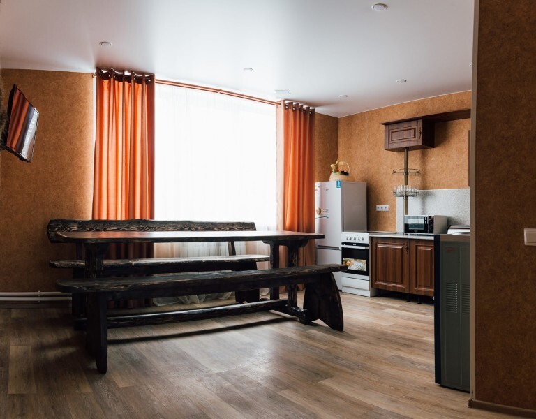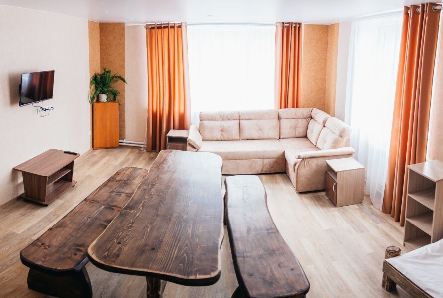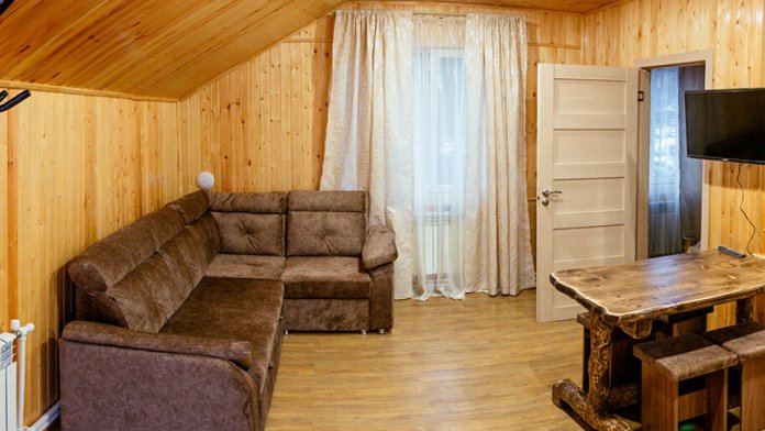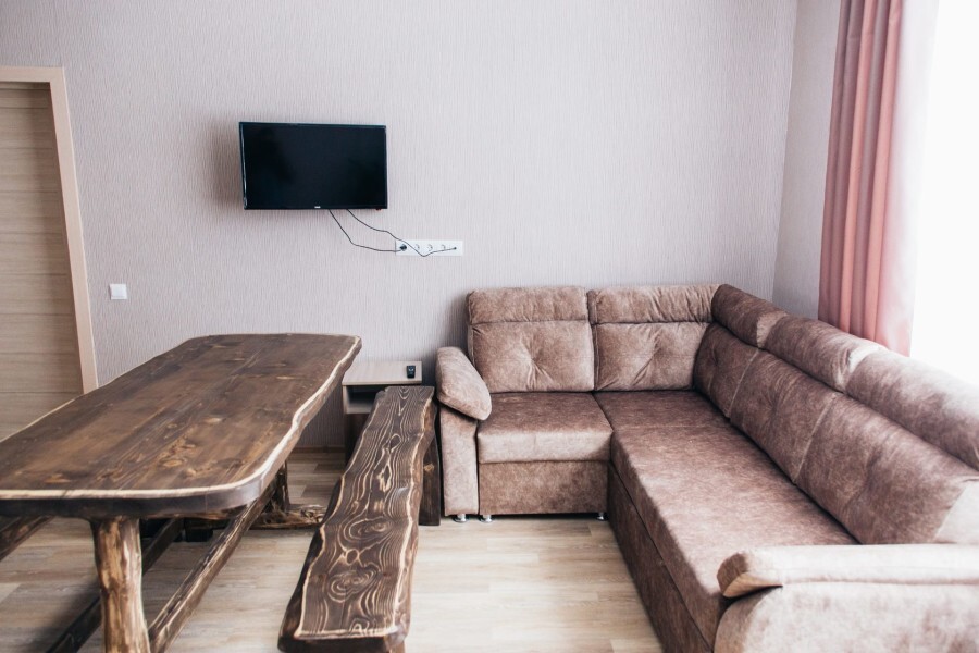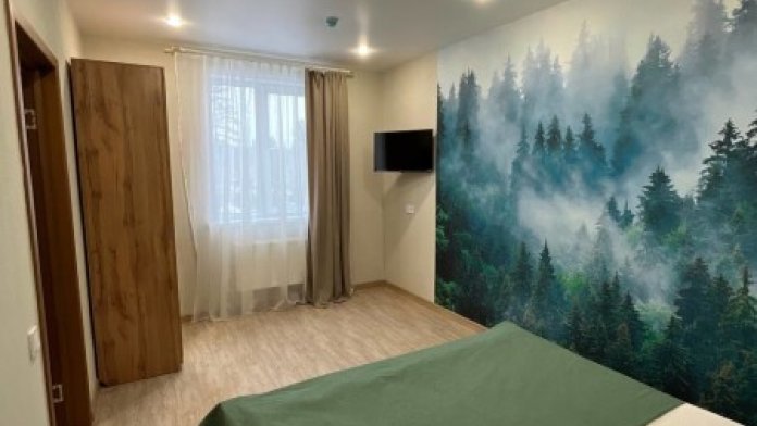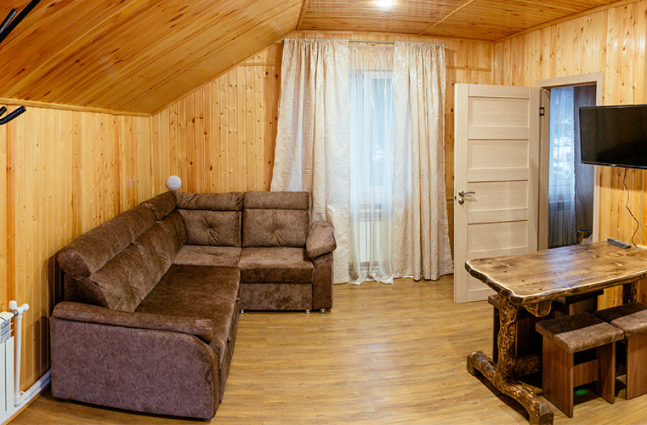 Мы находимся на второй линии, вдали от шума и дискотек, в окружении леса и абсолютной тишины, чтобы вы могли выспаться и насладиться уединением. Номера уютные с большими кроватями и большими окнами, выходящими на лес и гору Зеленая. Также, у нас на территории есть 2 бани из кедрового бруса и зимняя отапливаемая беседка. Летом у нас бассейн под открытым небом, летние беседки, спорт площадка и площадка для волейбола.