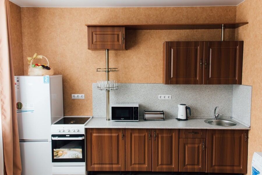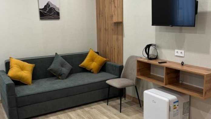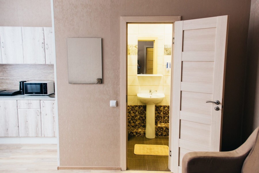 Изолированная спальня, гостиная совмещенная с мини кухней, собственный душ и туалет.