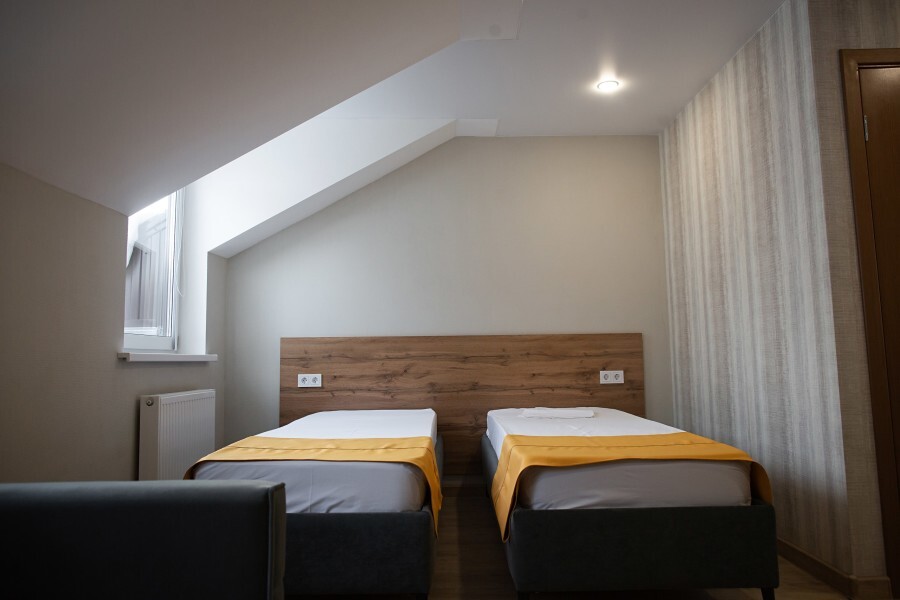 Этот номер подойдет для приятелей, отца с сыном, для братьев, сестер и подруг. Душ туалет в номере, отдельные кровати и ортопедические матрасы. Прекрасные виды из окон.