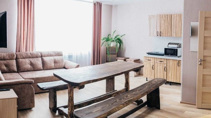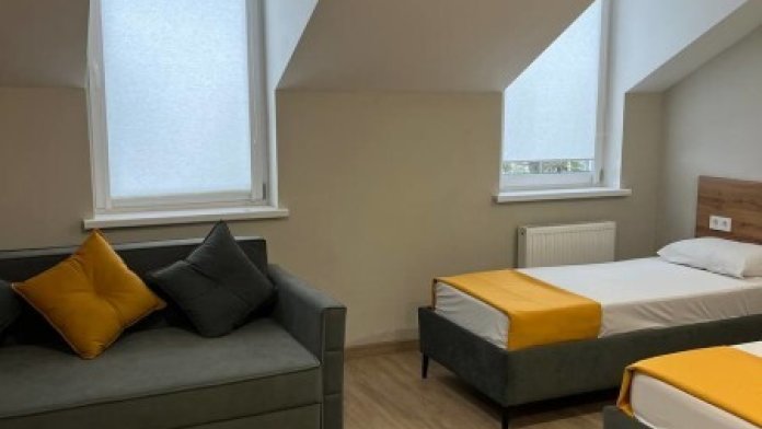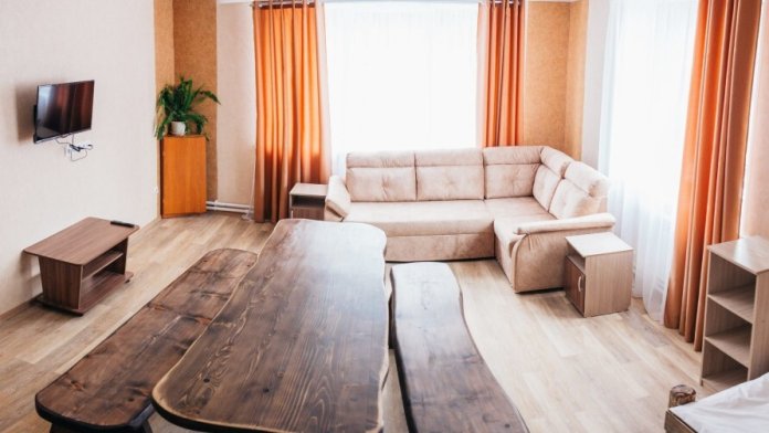 6-ти местный номер - двухкомнатный номер. В этом номере свой холодильник и чайник. В одной комнате большой раскладывающийся диван на 2 места и односпальная кровать, в другой комнате двухспальная и односпальная кровати. Санузел общий, на этаже.