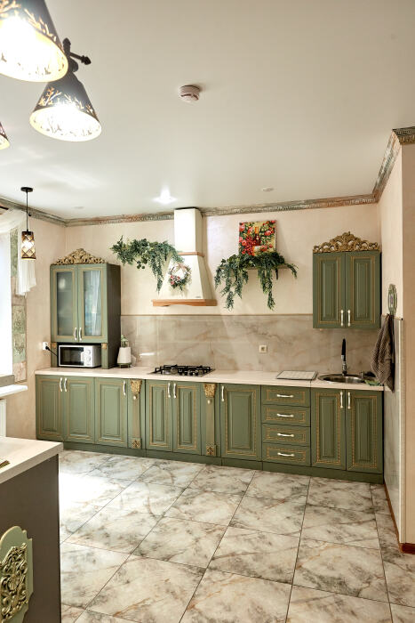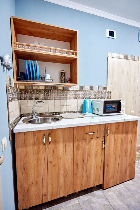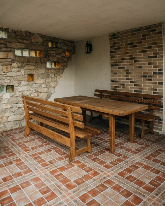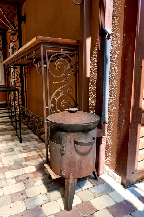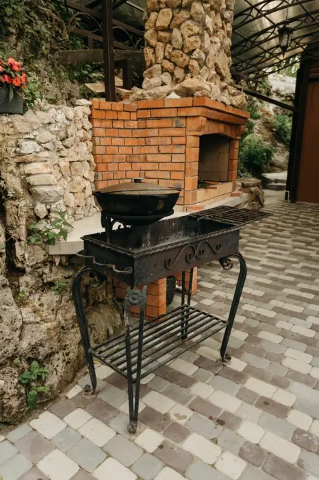 Несколько точек мангалов и зоны для гриля расположены в разных частях двора. Внутри дома есть полностью оборудованная кухня с выходом во двор, где Вы можете приготовить свои любимые блюда.