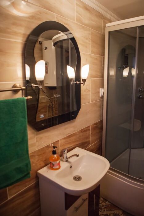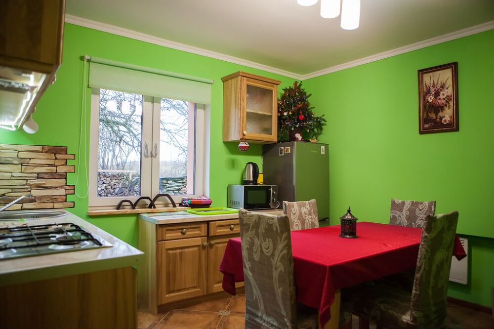 В новом доме, с современной мебелью и оборудованием. Комнаты рассчитаны на комфортный отдых от 2 до 8 человек. В доме есть полноценный санузел с душем, спутниковое ТВ, интернет, холодильник и кухня для приготовления еды, оснащенная всей необходимой посудой, столовыми приборами, микроволновая печь и газовая плита.