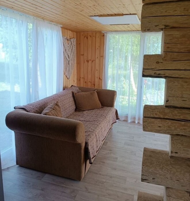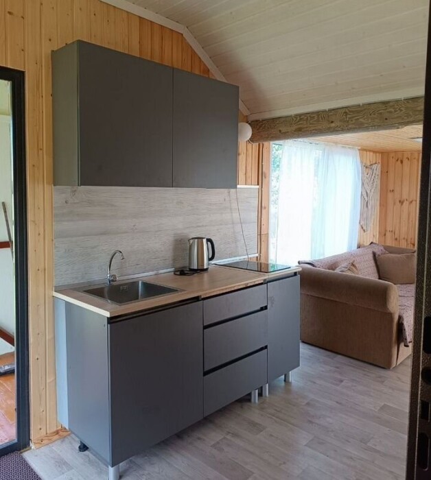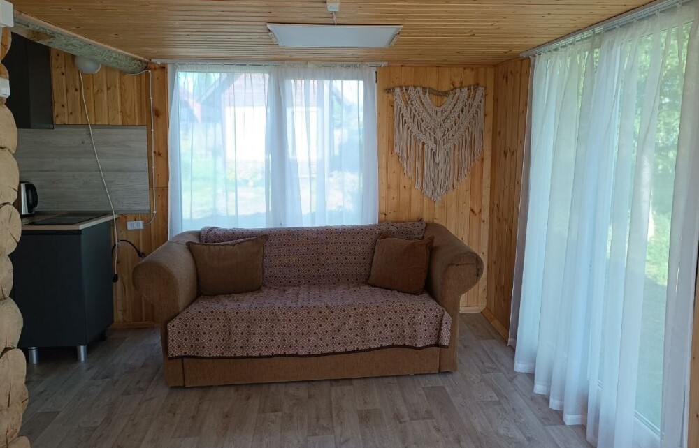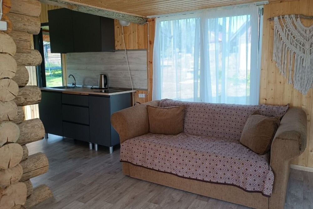 Домик №2 - 40 м. Из спальных мест 1 двуспальный диван, одна двуспальная кровать, при запросе количество спальных мест можно расширить (возможность есть).