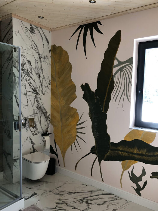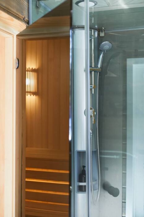 Уборная включает в себя душ, раковину, теплый пол, фен, набор полотенец для каждого гостя, утюг и гладильную доску.