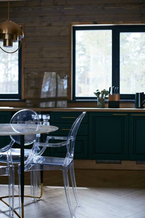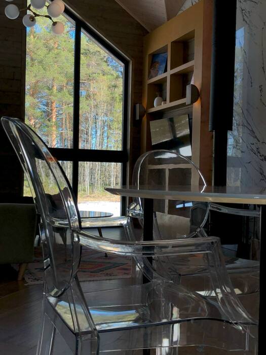 Дом включает в себя единое свободное пространство - гостиную, комфортный диван с полноценным спальным местом, камин на дровах, телевизор с плоским экраном и подключенным интернет ТВ, высокоскоростной Wi-Fi.