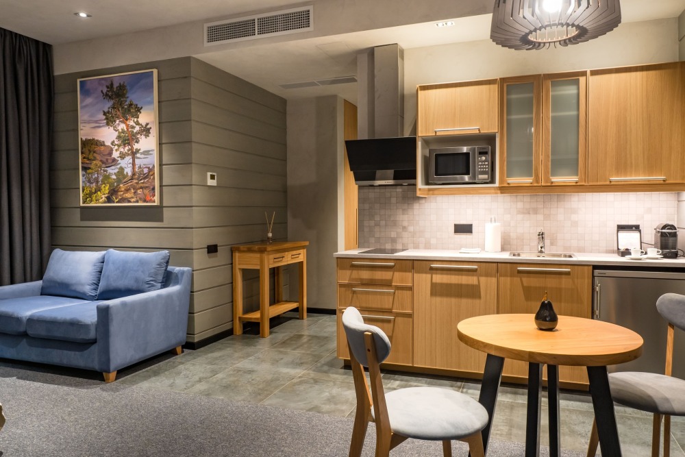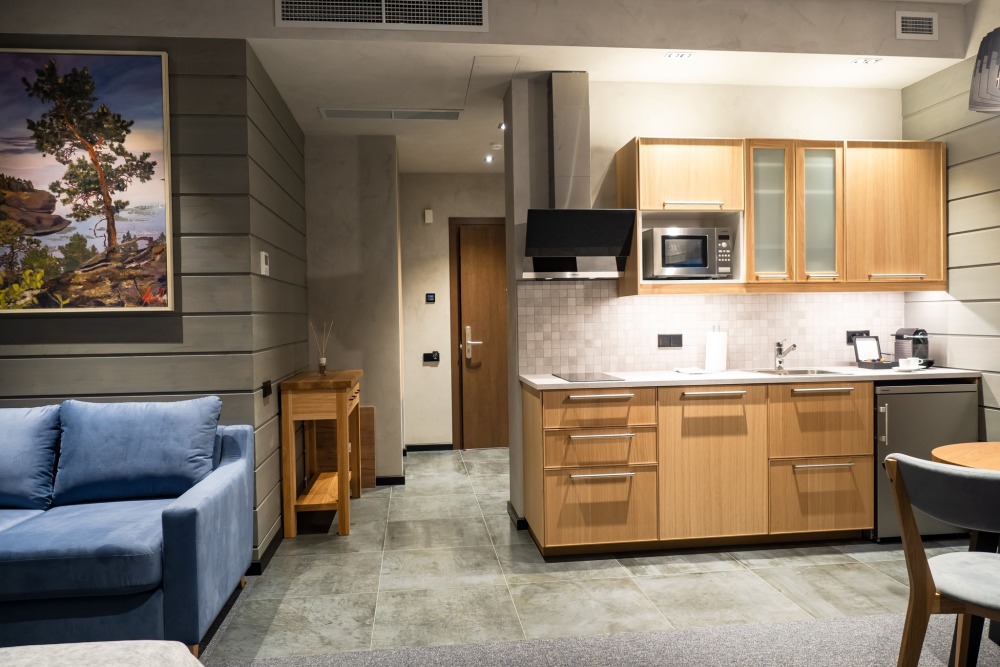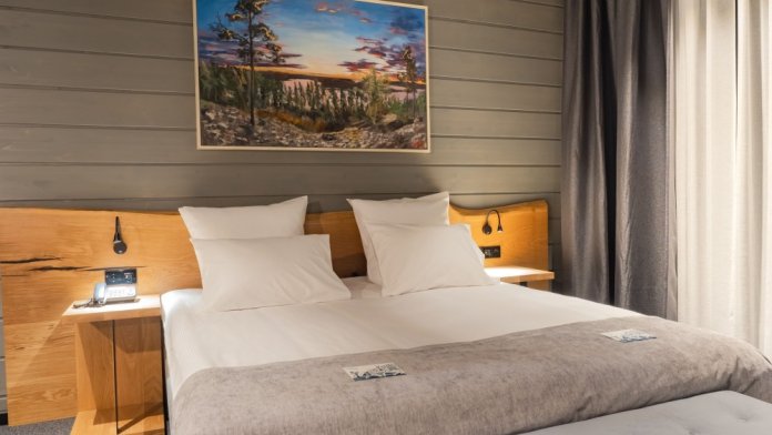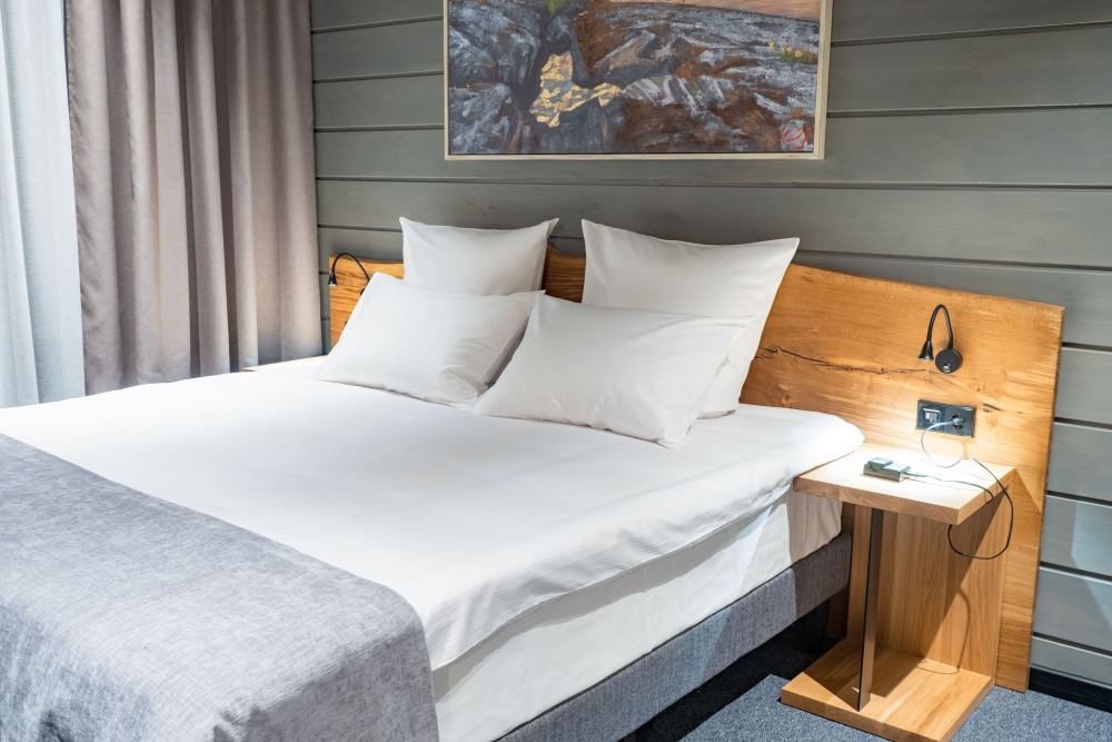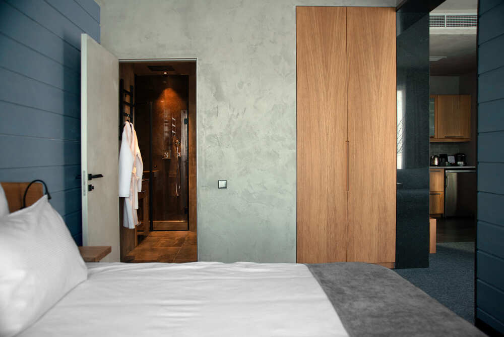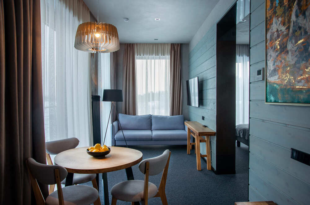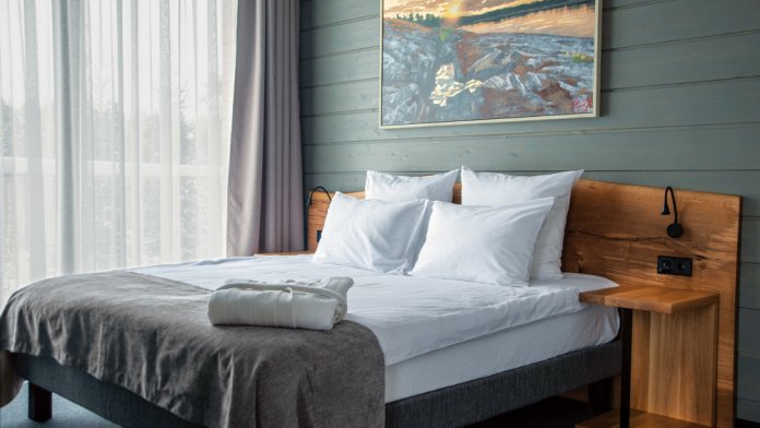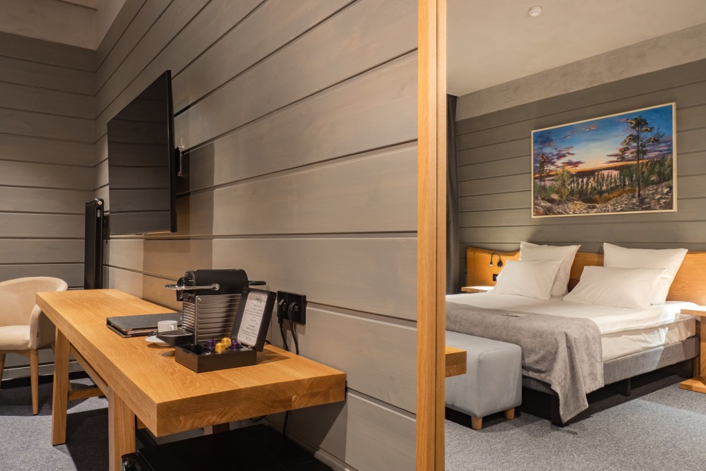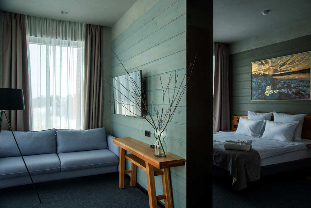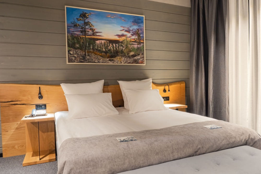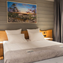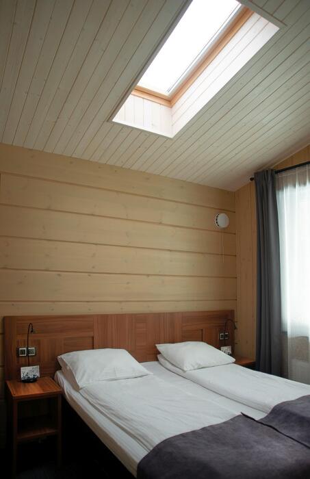 Мы предлагаем 3 варианта размещения - Стандарт Делюкс, Полулюкс, Люкс. Вас ждут: двуспальная, поистине королевская, кровать King-Size; капсульная кофемашина Nespresso; удобный санузел с комфортной душевой кабиной; постельное белье, полотенца, халаты, тапочки; все необходимые косметические принадлежности; мини-кухня (плита, столовая посуда на 2 человек, посудомоечная машина) (кроме Deluxe); роскошная панорама волшебной Ладоги; кондиционер.