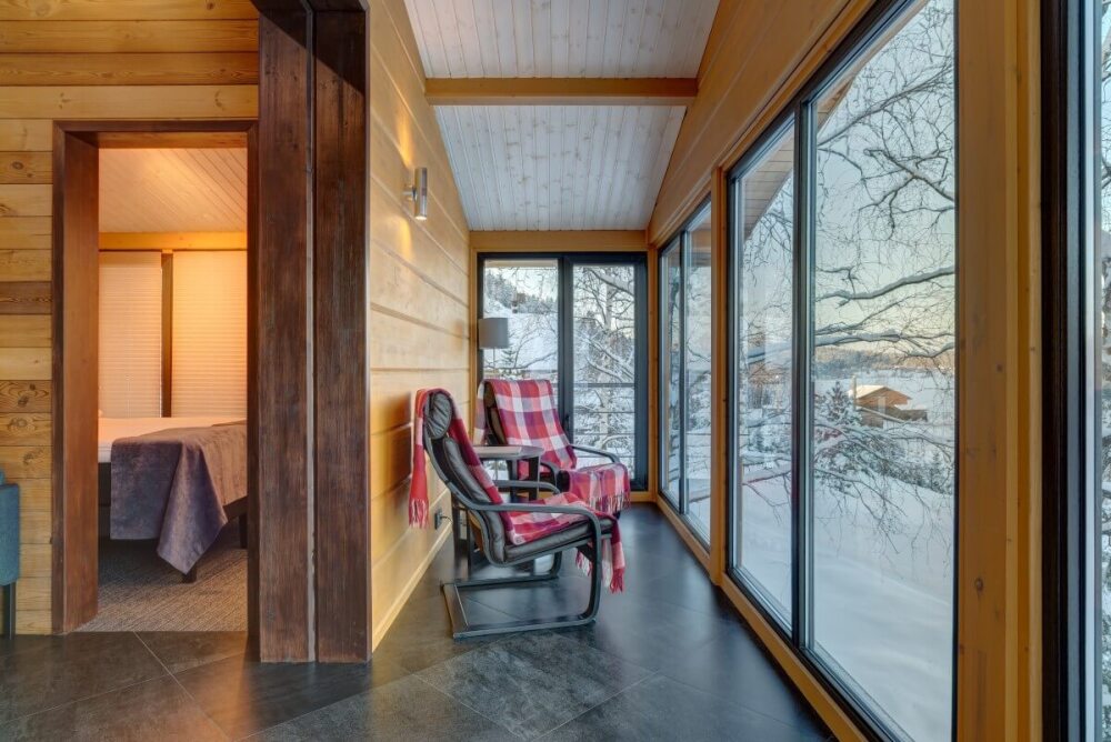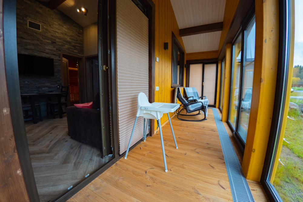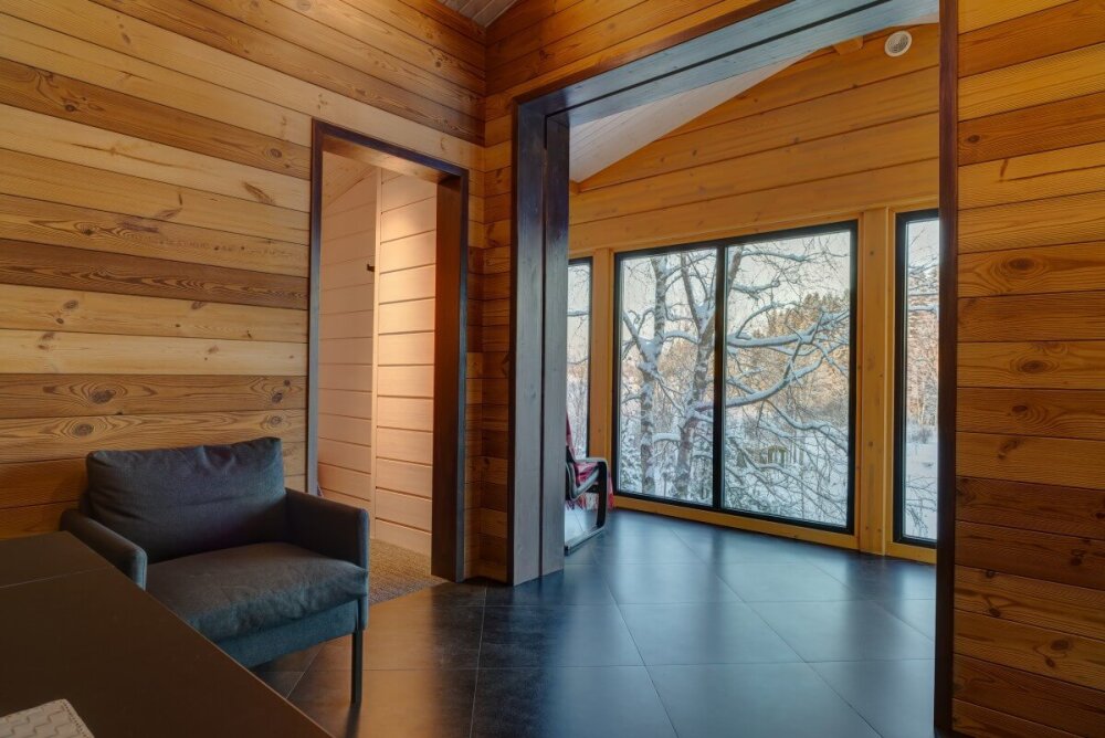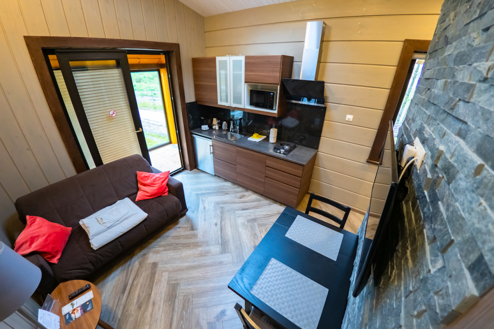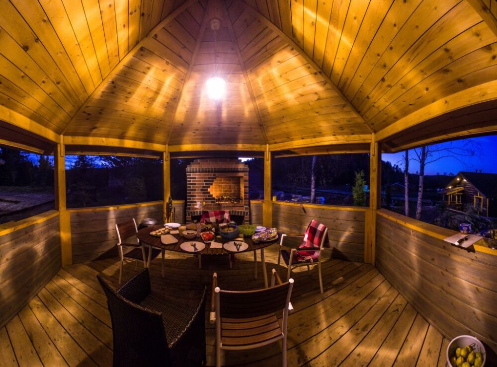 Арендуя домик в нашем комплексе у озера, Вы получаете полный перечень необходимых удобств. В распоряжении будет оборудованная кухня с варочной панелью, набором посуды, холодильником, микроволновой печью, посудомоечной машиной. В домиках грамотная планировка пространства, мягкие спальные места, бесплатный Wi-Fi. К личным услугам сауна, душ, санузел и косметические наборы. Возле каждого строения оборудована зона барбекю, предоставляются принадлежности для приготовления шашлыка. Приятный бонус коттеджей - застекленная просторная терраса с мебелью и панорамным видом на Ладогу.