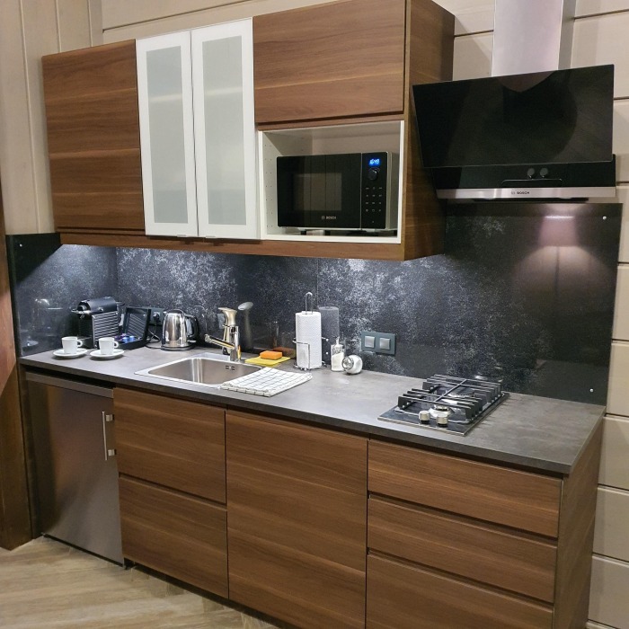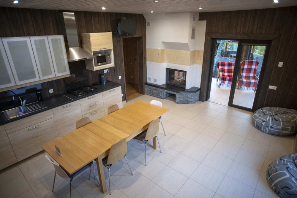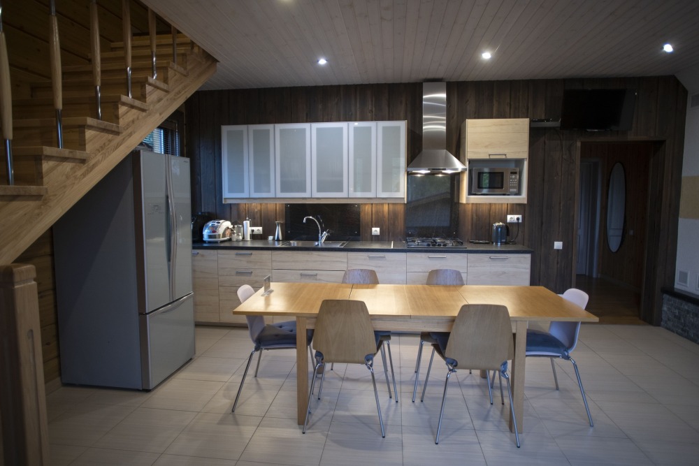 Оснащение: посудомоечная машина, варочная панель, кофемашина, мультиварка, посуда для приготовления пищи, столовая посуда на 8 человек, камин, 4 жк-телевизора, терраса с мебелью, 4 душевых и санузла, постельные принадлежности, полотенца, звукоизоляция, зона барбекю, шампуры на 8 человек, решетки для рыбы и мяса, финская сауна (за отдельную плату).