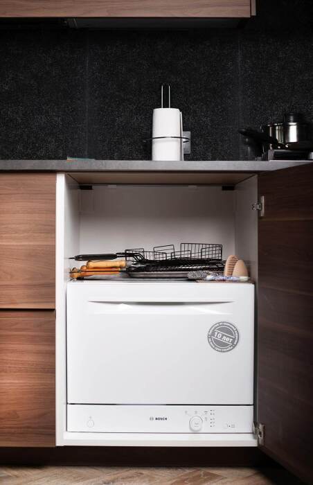 В коттедже: 2 полноценные спальные комнаты, кухня соединена с гостиной зоной, панорамные окна, камин и декоративная подсветка. Имеется посудомоечная машина, сауна.