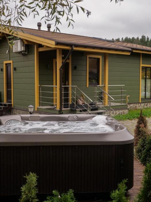 Отличительной особенностью является современный джакузи с подогревом на открытой террасе с видом на Ладожское озеро. С 01 декабря по 01 апреля джакузи не работают. Первый набор для барбекю: пакет угля 15 л и жидкость для розжига 0,5 л предоставляются для гостей комплиментарно при заезде.