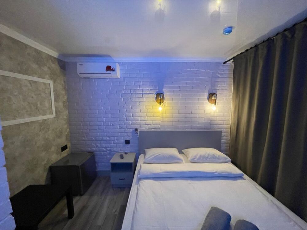 Двухместный номер Комфорт с большой кроватью, телевизором, бесплатным WI-FI, холодильником и телефоном, со всеми удобствами, свой санузел с предметами личной гигиены, бесплатная закрытая парковка, завтрак включен в стоимость проживания.