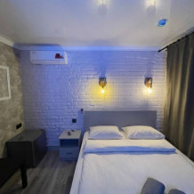 Стандартный двухместный номер с большой кроватью, телевизором, бесплатным WI-FI, со всеми удобствами, свой санузел с предметами личной гигиены, бесплатная закрытая парковка, завтрак включен в стоимость проживания.