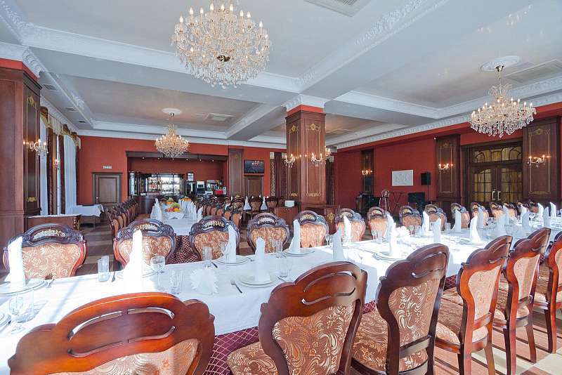 Торжественное событие, важные встречи, юбилейные банкеты или свадьбы наши гости чаще всего предпочитают проводить в роскошных залах нового здания, где на 1 этаже с удобством разместятся 150 гостей, а на 2 этаже - 400. Вы сможете выбрать интерьер, более всего радующий ваш взгляд - мы рады предоставить на Ваш выбор: Оранжерею (Стеклянный зал); Каминный зал; Банкетный зал; Летние площадки. Если же Вы планируете пригласить больше 400 гостей, Вы можете арендовать весь ресторанный комплекс, а это ни много, ни мало, а 1000 мест.