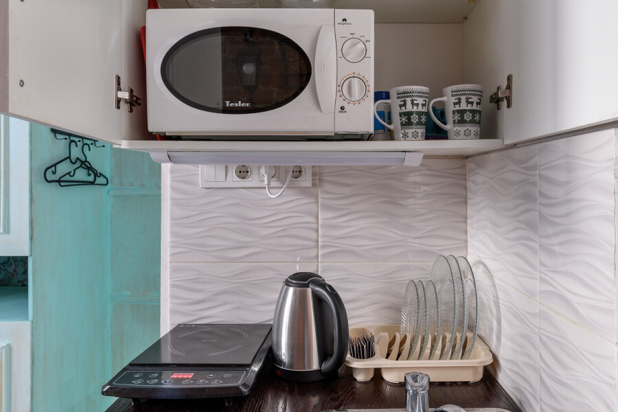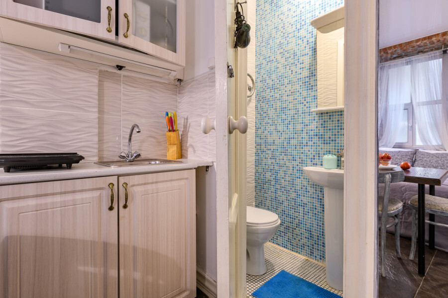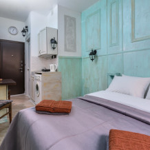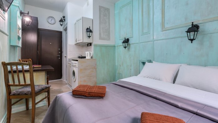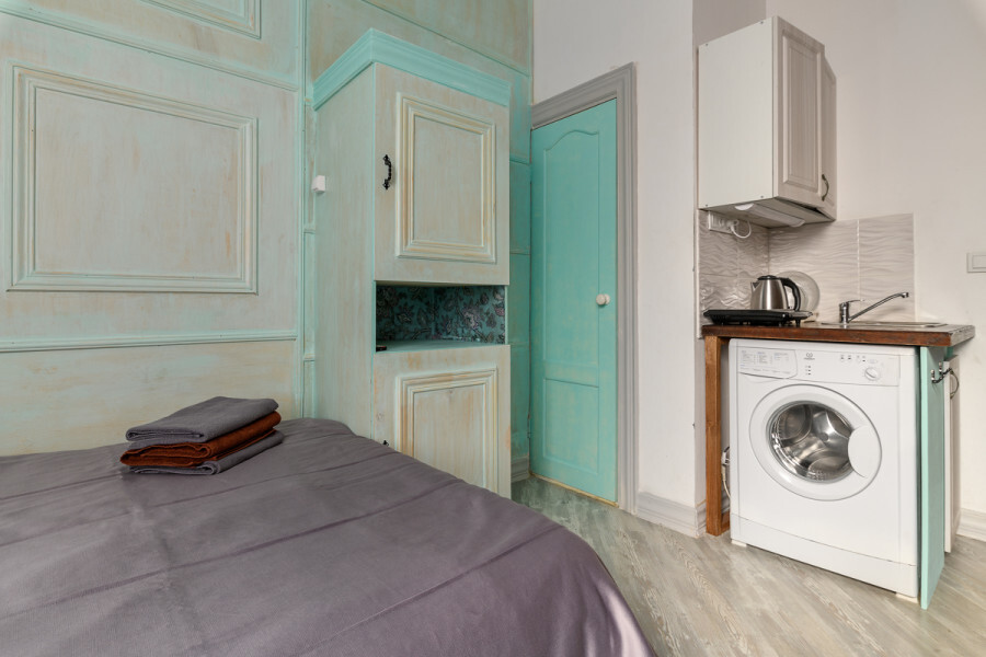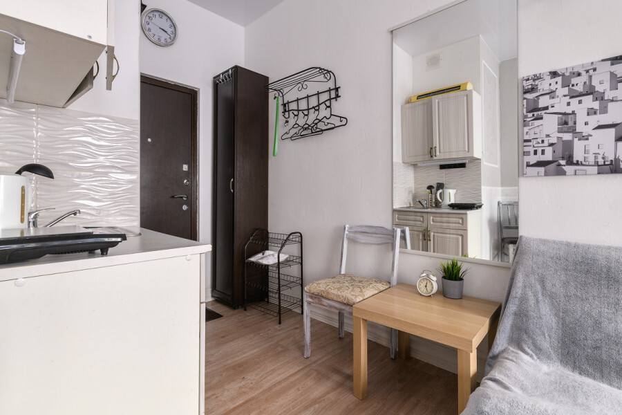 В квартире есть все необходимое для комфортного проживания: двуспальная кровать, шкаф, тумба, мини-кухня, санузел.