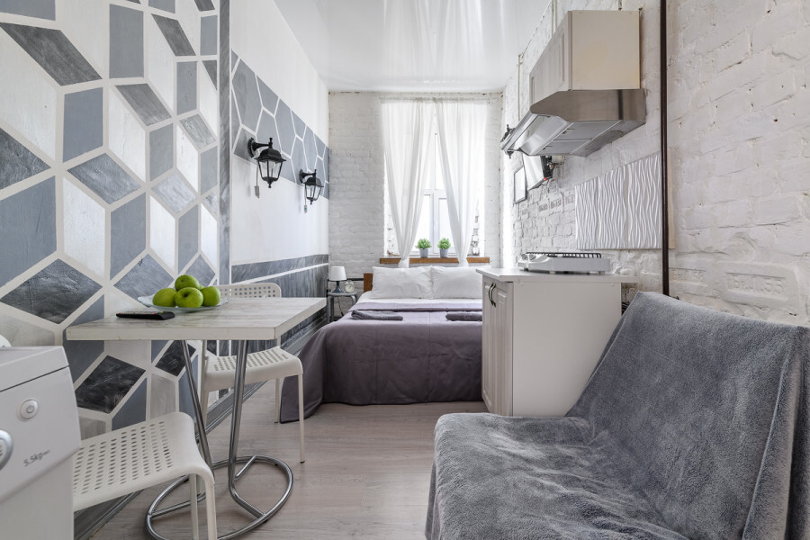 Студия (17м2) на 1 этаже из 6 с современным и практичным ремонтом в стиле Лофт для 2-х гостей в самом Центре города.