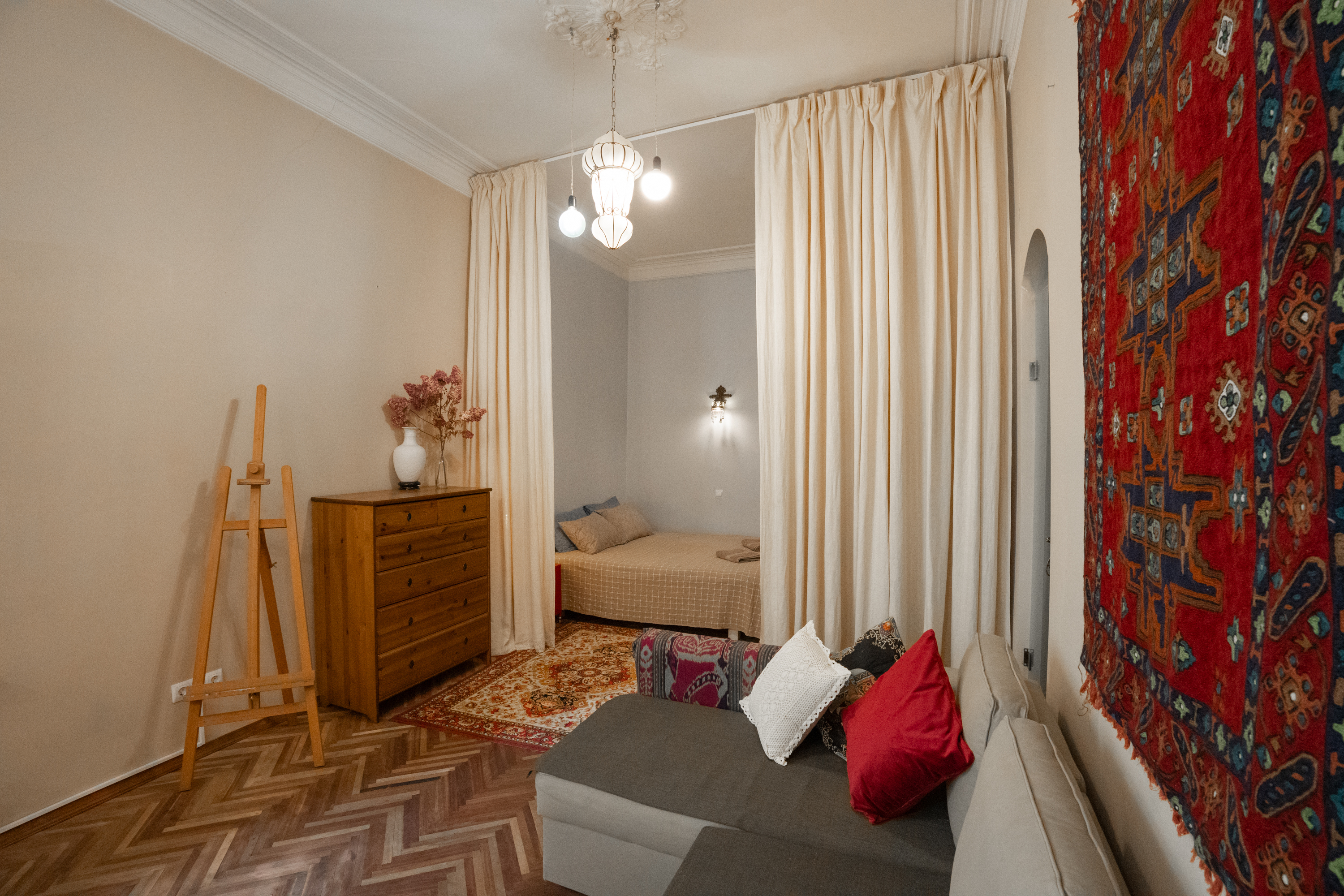 Квартира оформлена с заботой и вниманием к деталям - авторский дизайн, индивидуально подобранные элементы декора. Здесь есть всё для комфортного отдыха: удобная мебель, качественное постельное бельё, полотенца, бытовая техника и посуда.