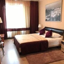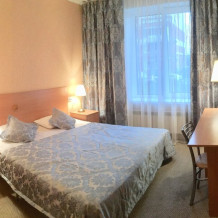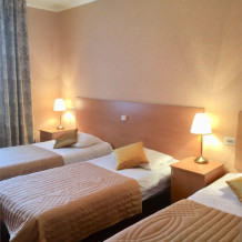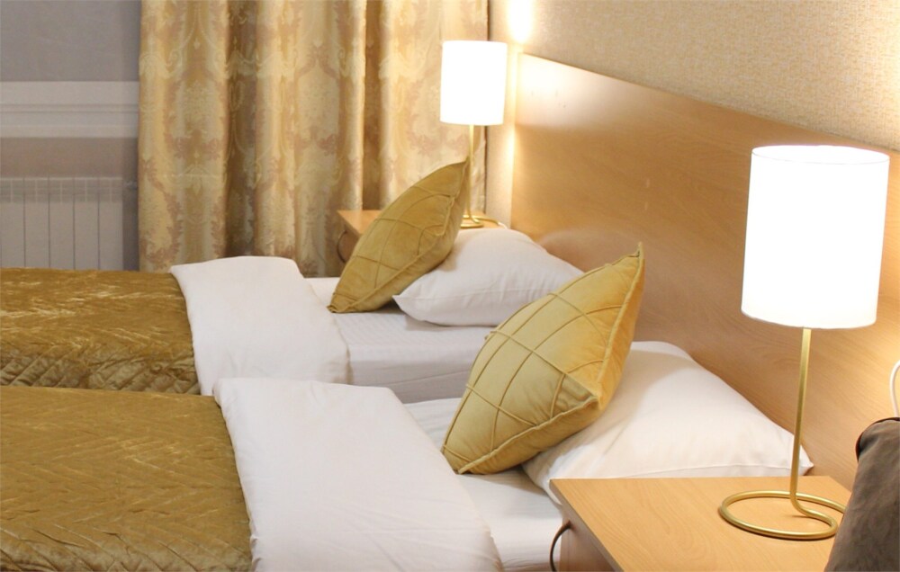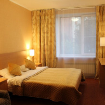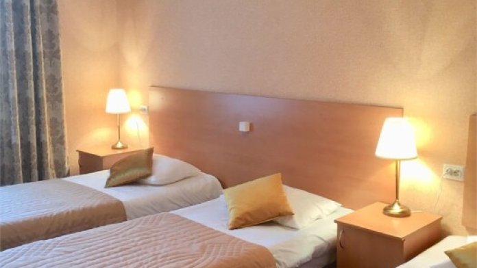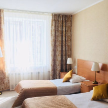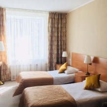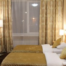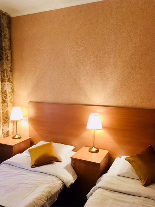 Улучшенная комната комфортной категории. Отличается необычайным шармом и эстетикой. Две односпальные кровати, кресло-диван, WI-FI бесплатно, ж/к телевизор, чайник, чашки, занавески blackout. В комнате своя отдельная ванная комната и туалет.