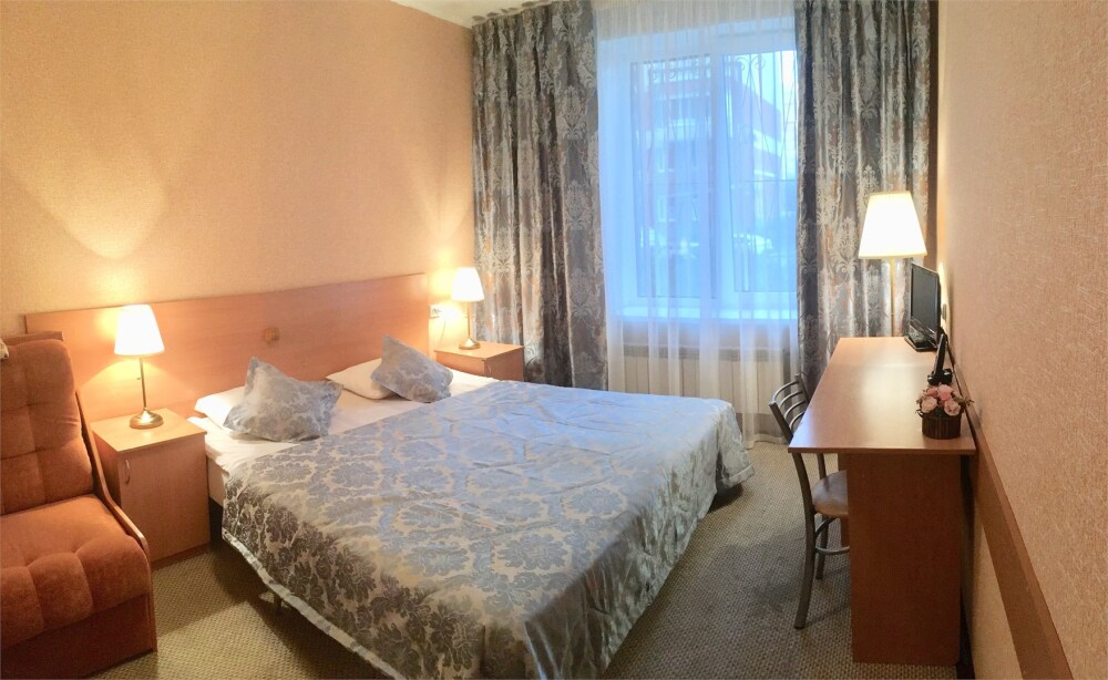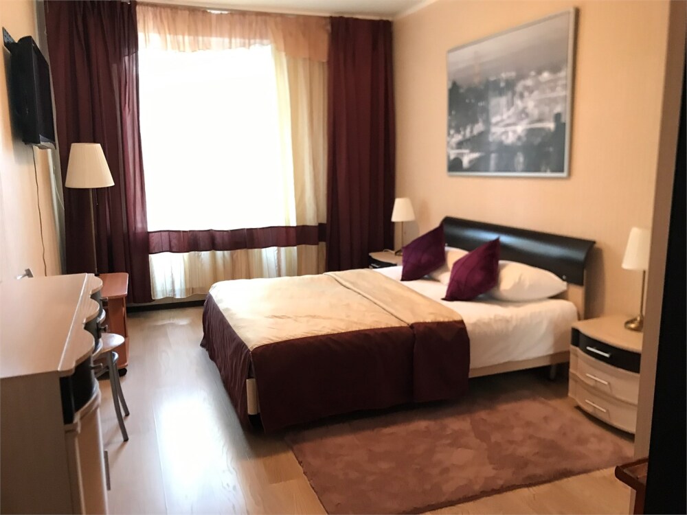 Отличная, просторная, уютная комната. Ж/К телевизор, чайник, чашки, занавески blackout. Wi-Fi бесплатно. В комнате собственная ванная комната и туалет.