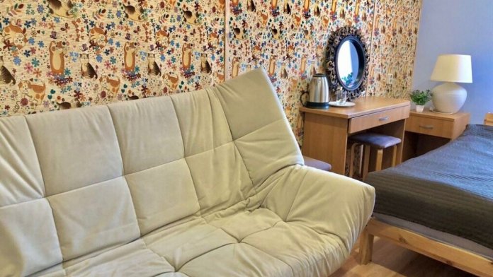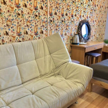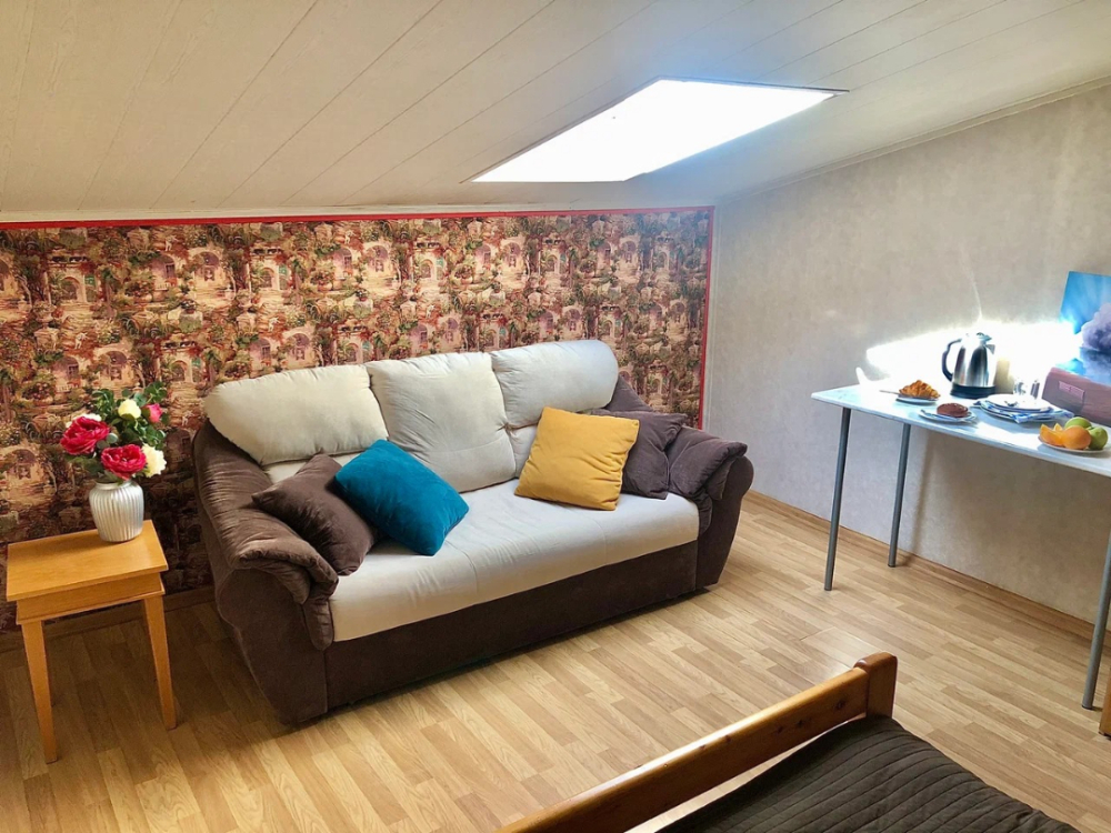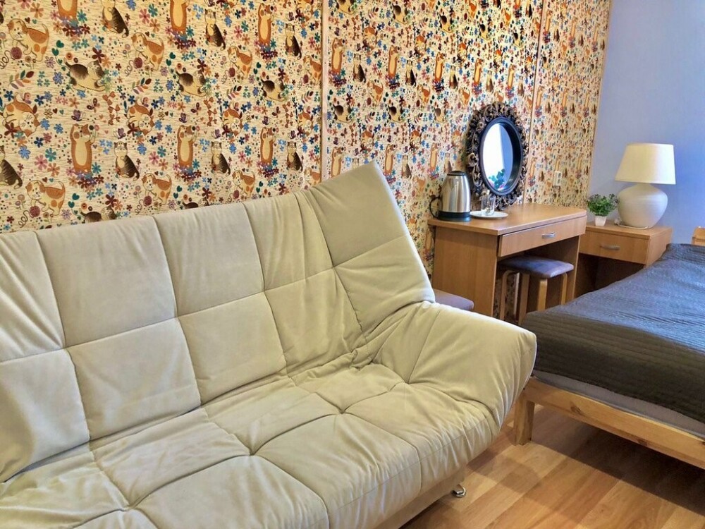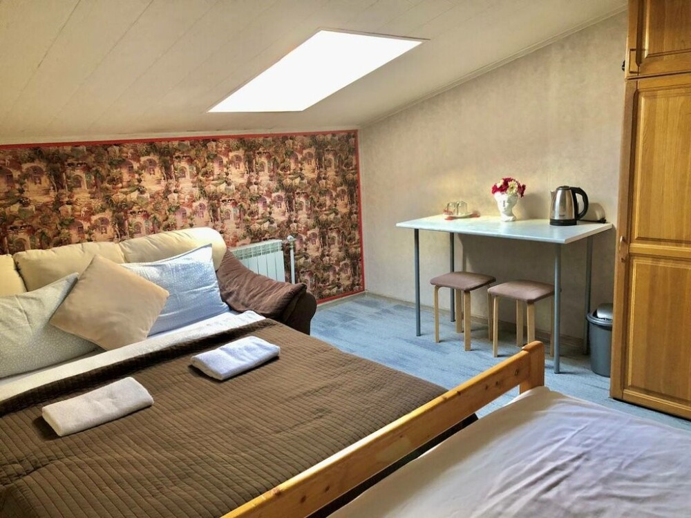 Ортопедические матрас на двуспальной кровати и большой двуспальный диван позволят Вам отлично отдохнуть и выспаться. В номере есть чайная зона, большой раскладной диван, смарт телевизор и шкаф. Каждому гостю предоставляются бесплатные полотенца. Удобства на этаже.
