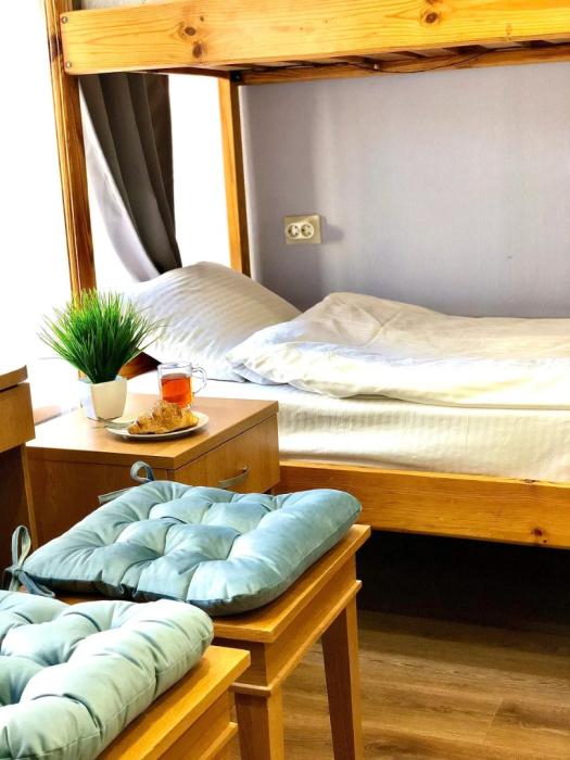 Удобства на этаже. Ортопедические матрасы и шторы блекаут позволят Вам отлично отдохнуть и выспаться. В номере есть чайная зона и шкаф. Каждому гостю предоставляются бесплатные полотенца.