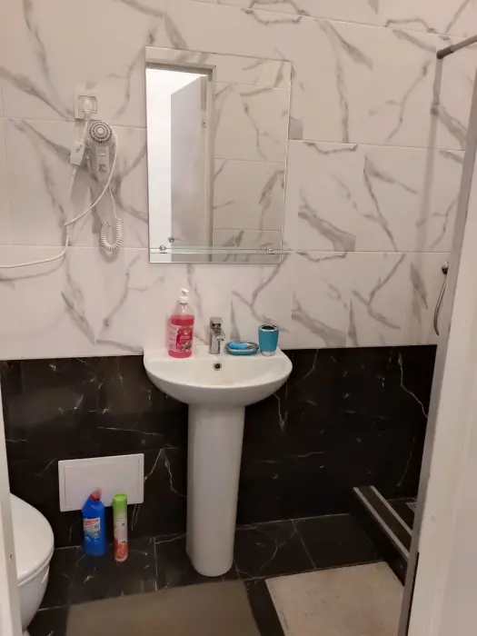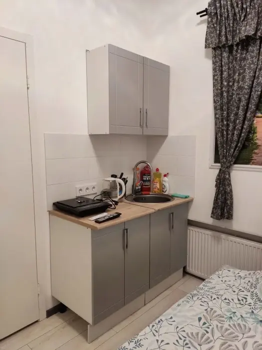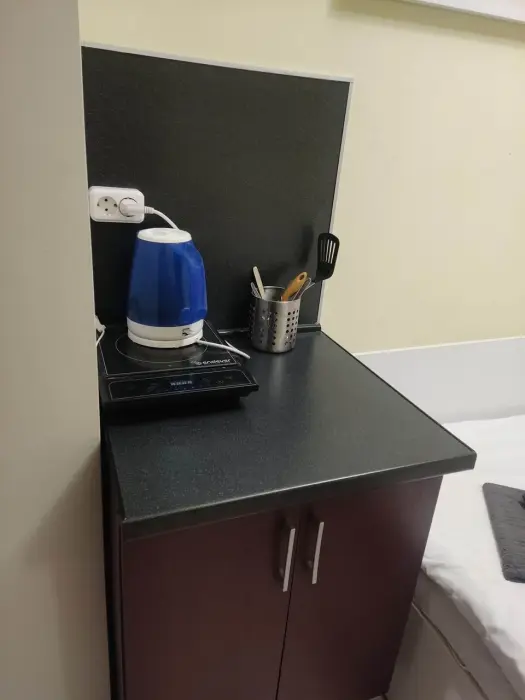 Во всех номерах отеля свой санузел с душем, мини-кухня, телевизор с кабельной сетью, Wi-Fi, необходимые мебель, посуда, бельё, принадлежности. Предлагаются номера двух категорий: «эконом без окна» и «стандарт».