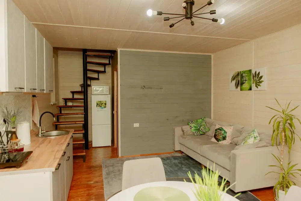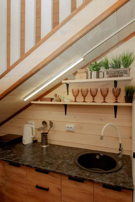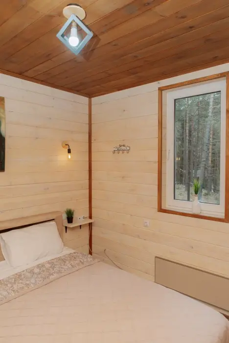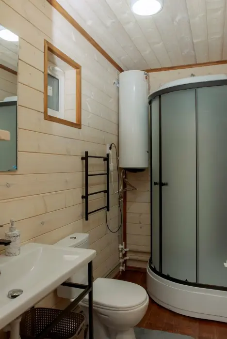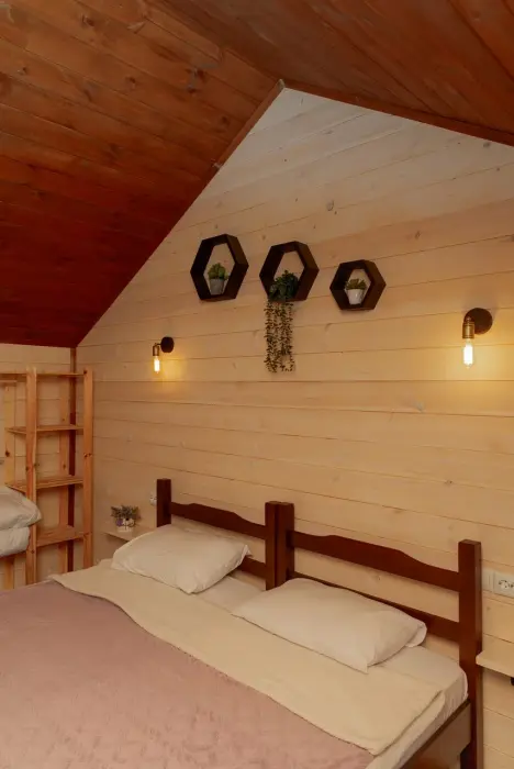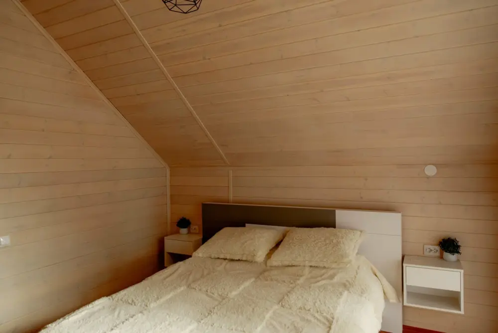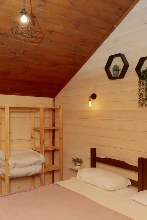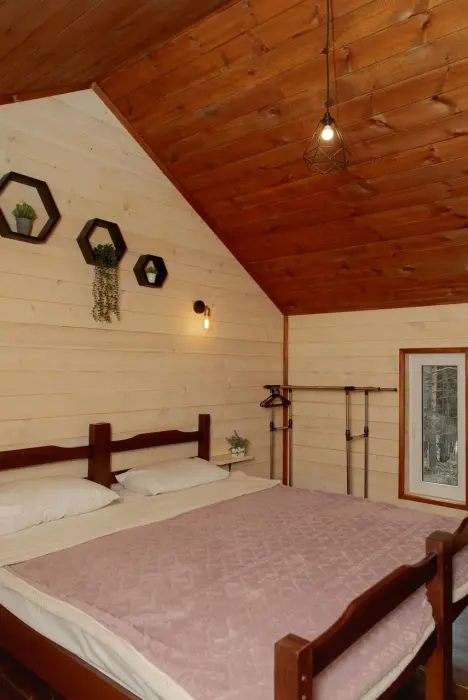 На втором этаже расположены два спальных места, одно из которых в отдельной спальне, которая имеет свой уникальный стиль и дизайн. Ванная комната оборудована всеми необходимыми принадлежностями.