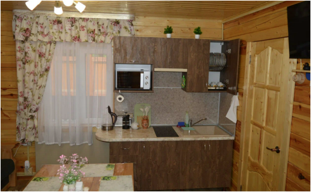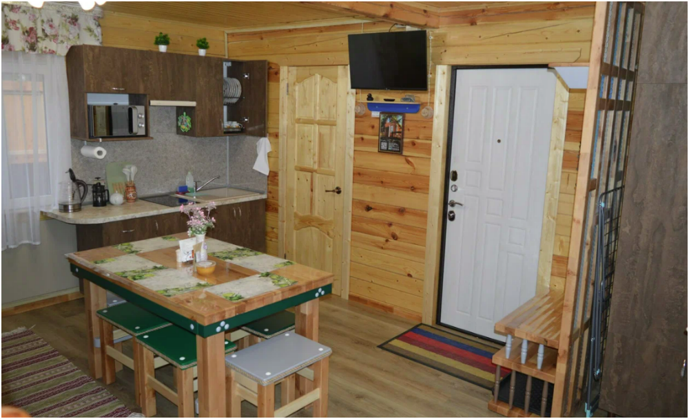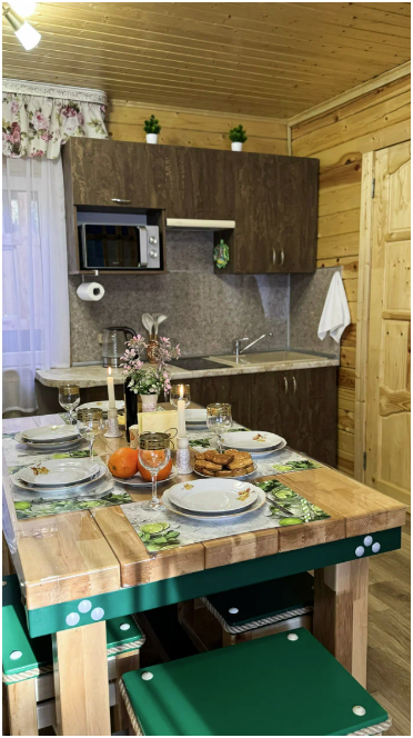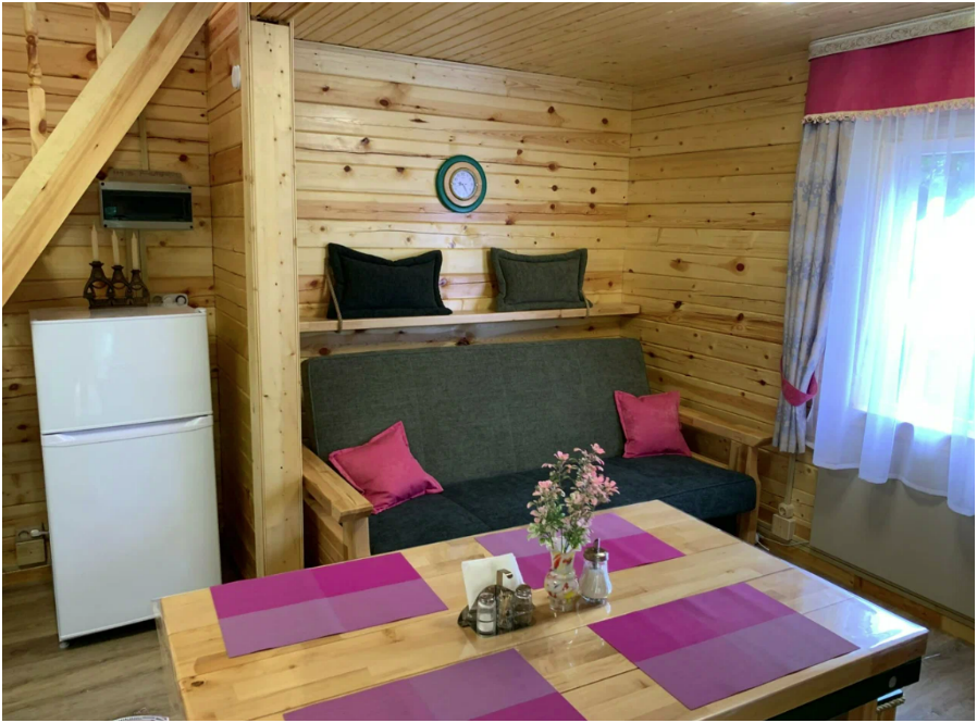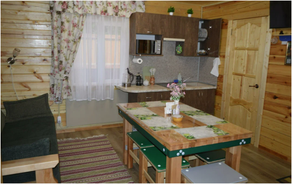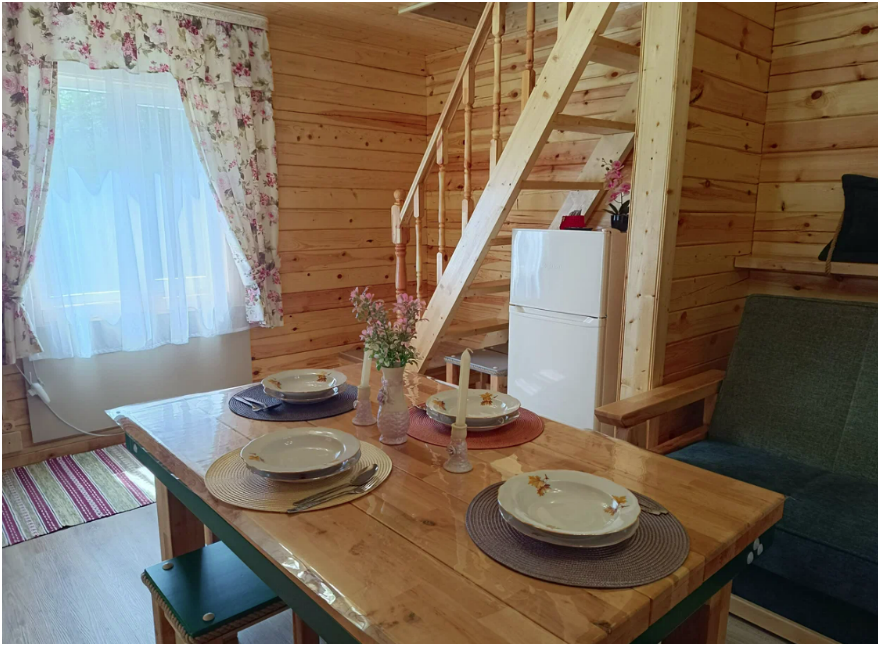 Для проживания гостям предлагаются уютные коттеджи, оборудованные всем необходимым для комфортного проживания. Домики расположены в окружении леса, что позволяет наслаждаться свежим воздухом и природой. В каждом домике есть комфортабельные спальные места, кухня с обеденной зоной, оборудованная необходимой техникой и посудой, санузел с душем.