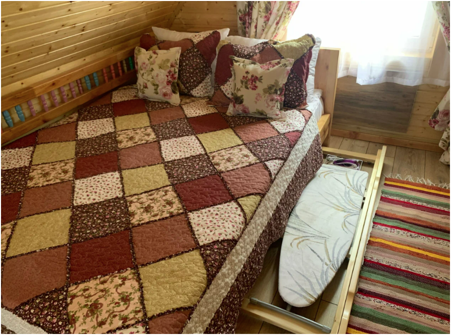 Спальные места: двуспальная и односпальная кровати с ортопедическими матрасами и большой раскладной диван.