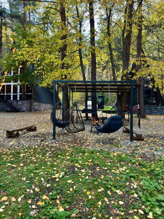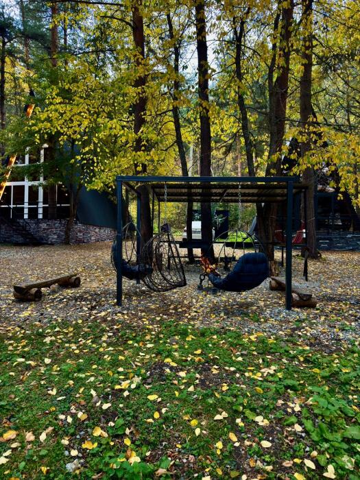 На территории: беседка, качели, батут, мангальная зона, костровая зона.