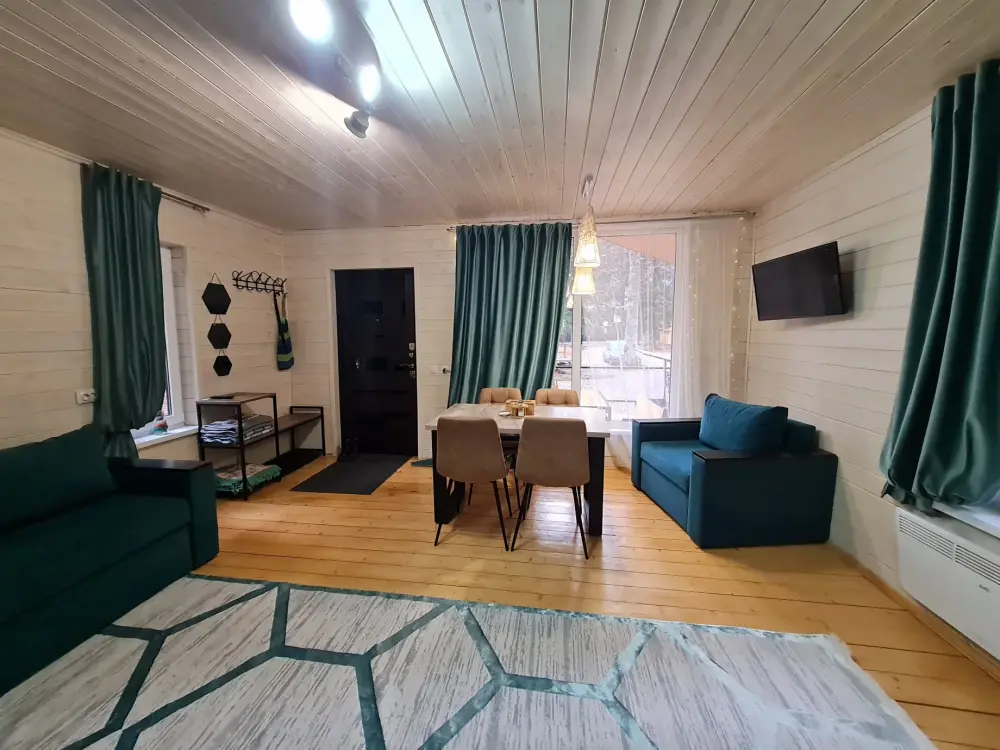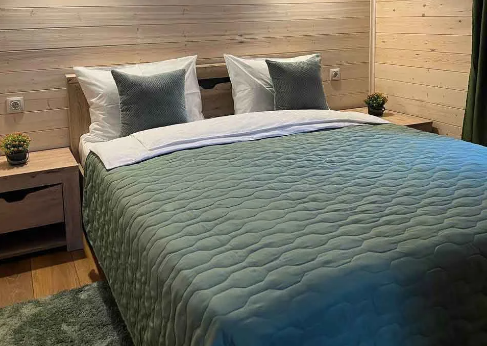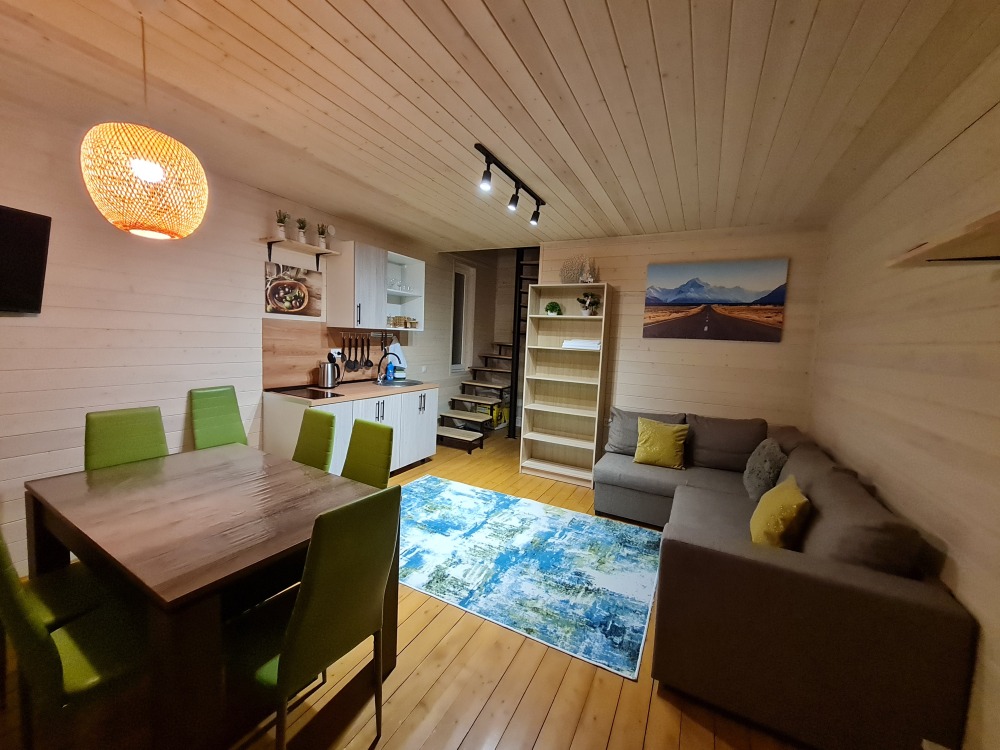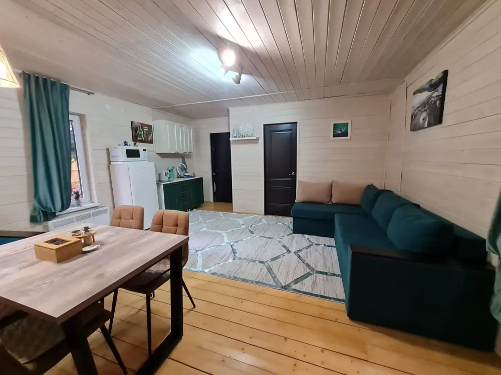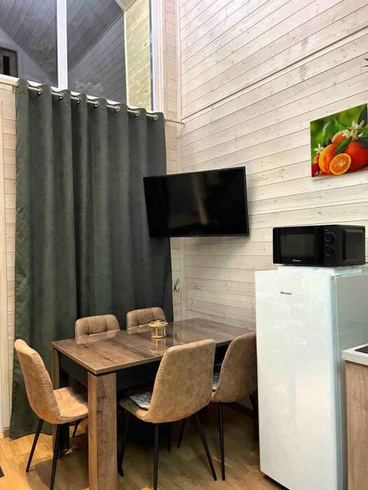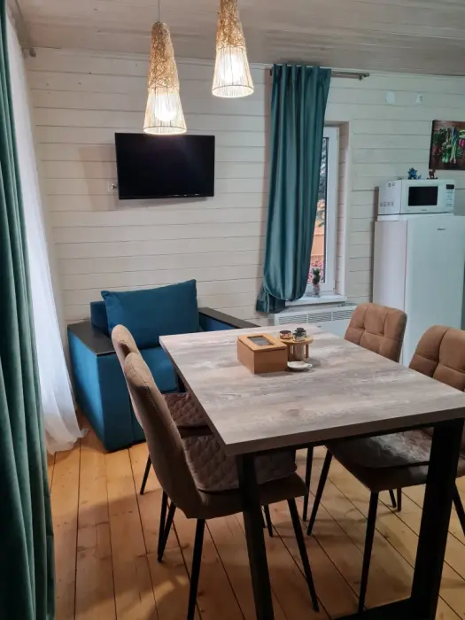 Комфортные номера, выполненные с стиле «Шале» и «Барнхаус» оборудованы для самостоятельного проживания. В каждом номере есть кухня, бытовая техника и мебель для повседневного использования.