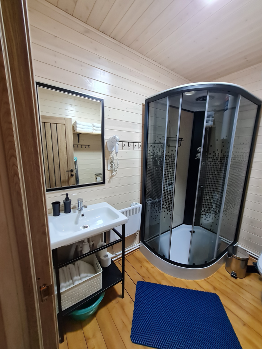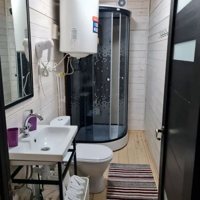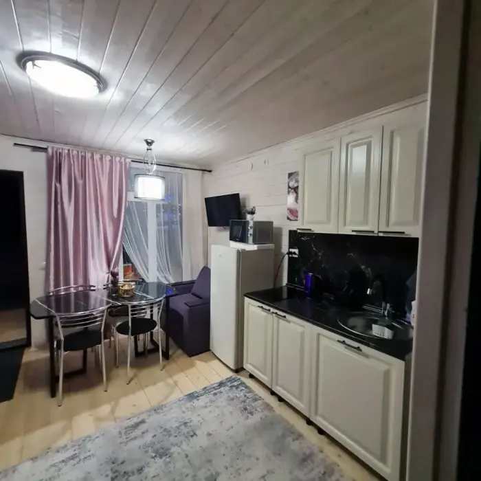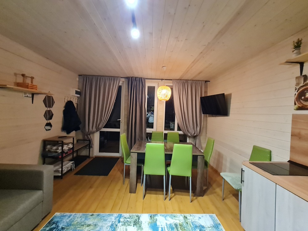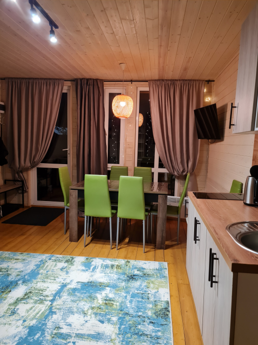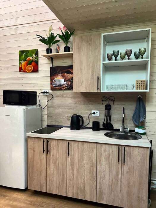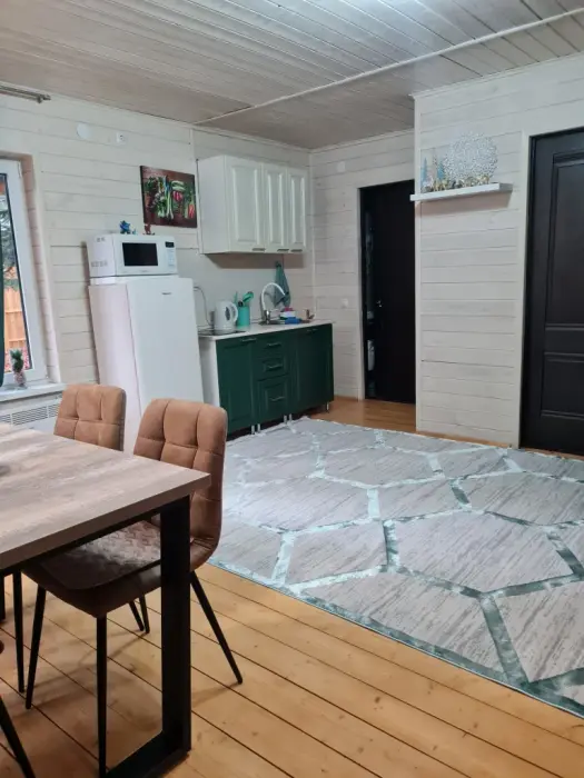 Комфортные номера, выполненные с стиле «Шале» и «Барнхаус» оборудованы для самостоятельного проживания. В каждом номере есть кухня, бытовая техника и мебель для повседневного использования.
