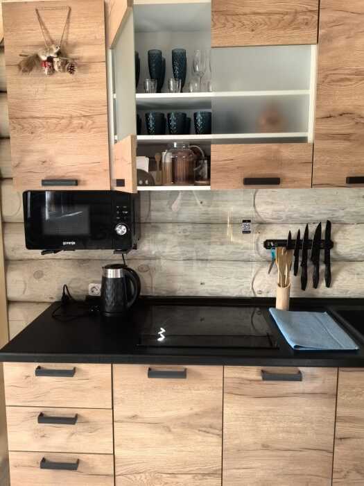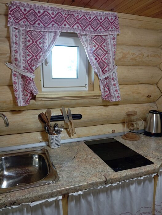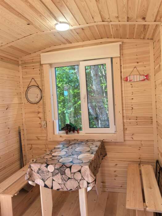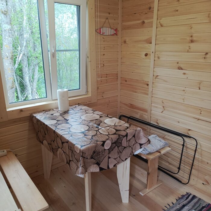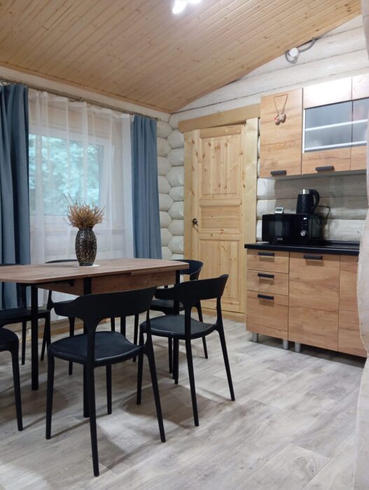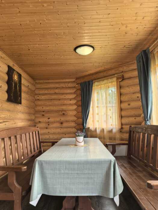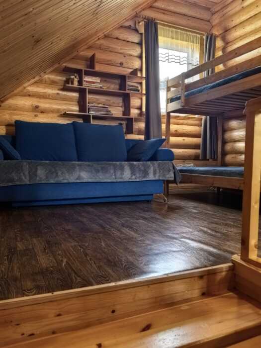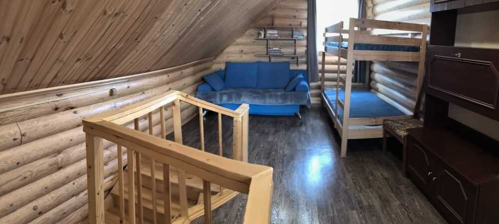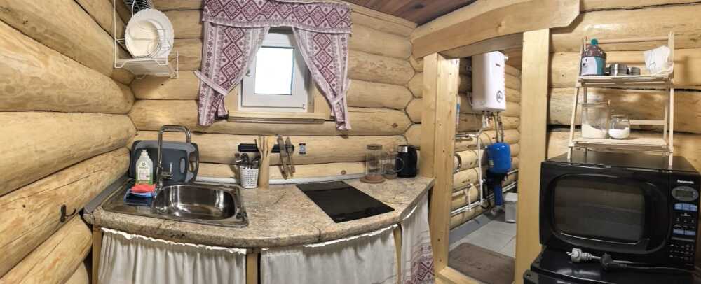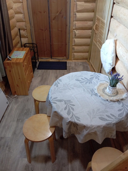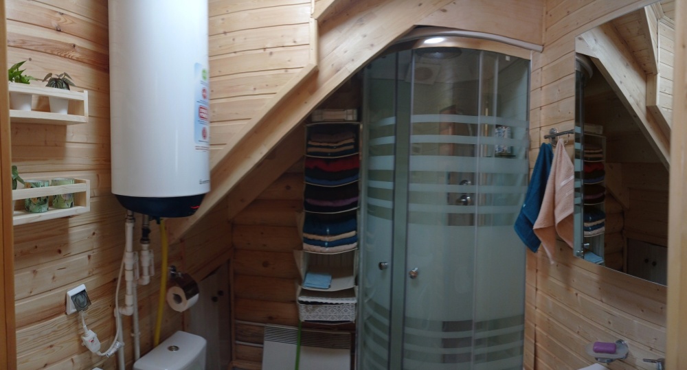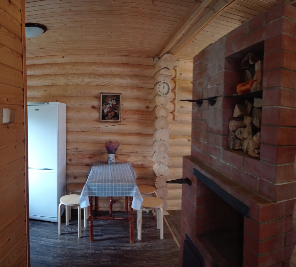 Дом отапливается системой теплонакопителей, теплый пол в санузле и даже в лютый мороз - в домике тепло и уютно. В доме кухня; санузел, 1 комната и кровать-чердак, т.е двухэтажная конструкция, на 2 этаже которой размещаются 4 спальных места. ЖК телевизор (обязательно появится в ближайшее время). Гостям предоставляется постельное белье, полотенца.