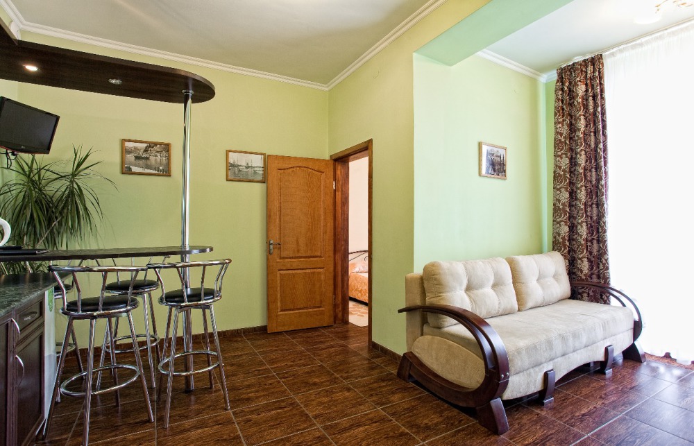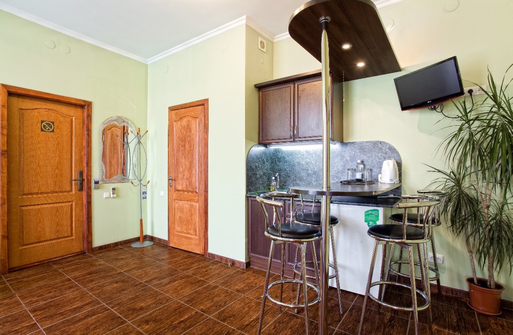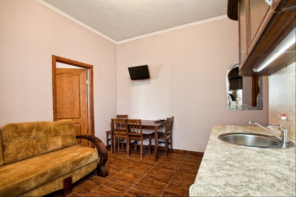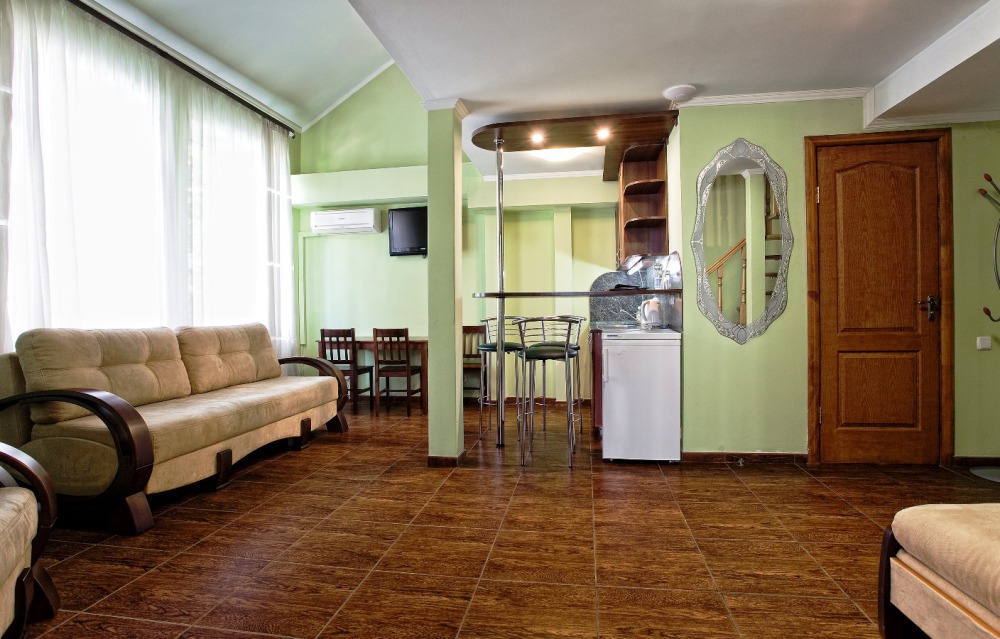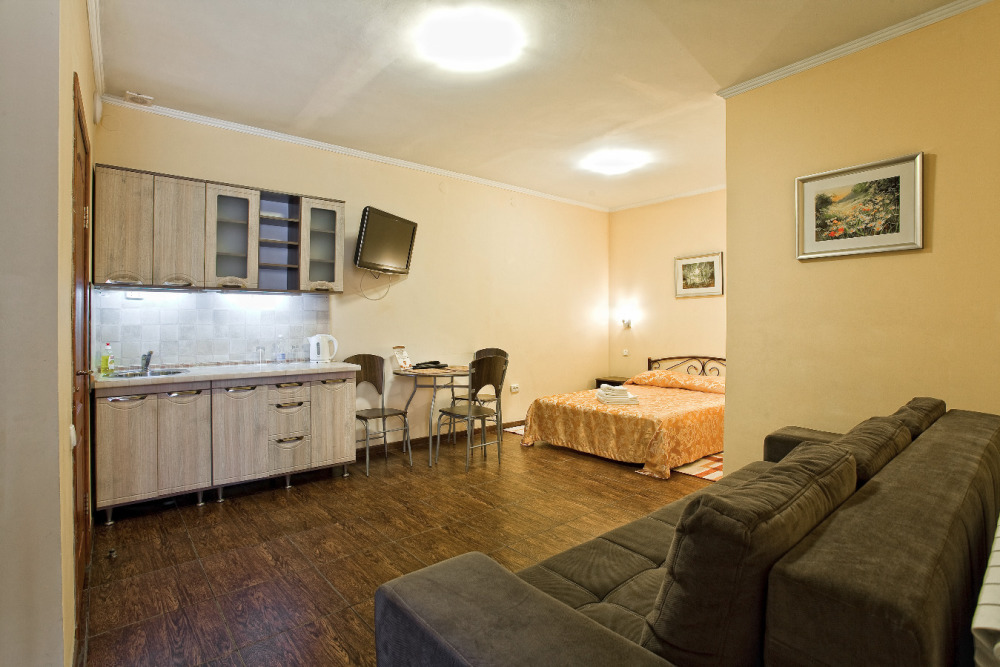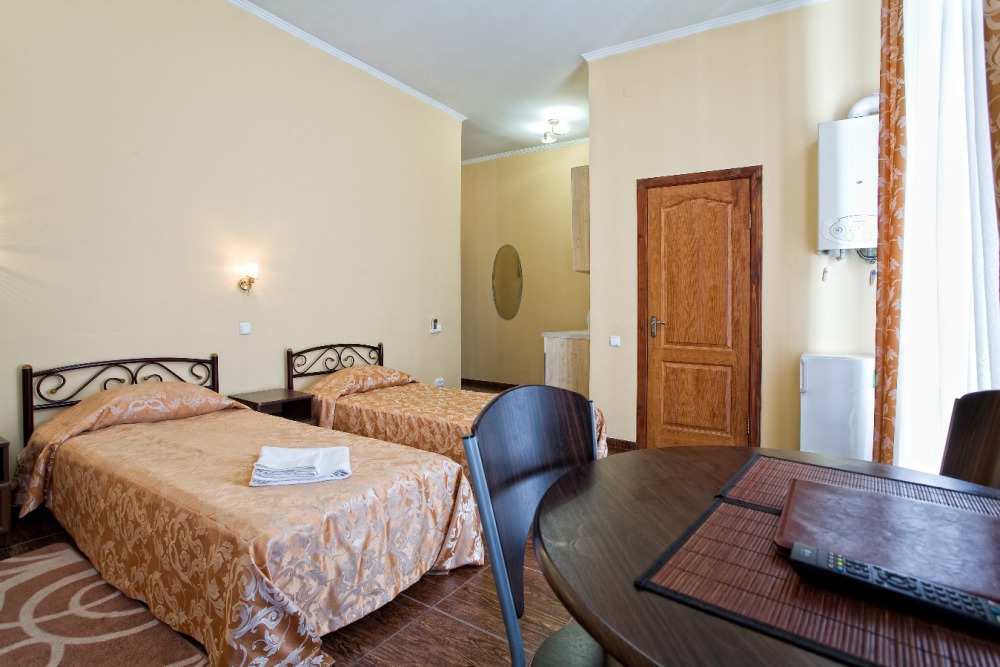 Гости могут разместиться в номерах разных категорий: Стандарт, Стандарт улучшенный, Полулюкс и Люкс. Каждый номер оборудован кондиционером, Wi-Fi, отоплением, TV, полностью оборудованной кухней, санузлом, белоснежным постельным бельем и полотенцами.