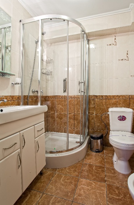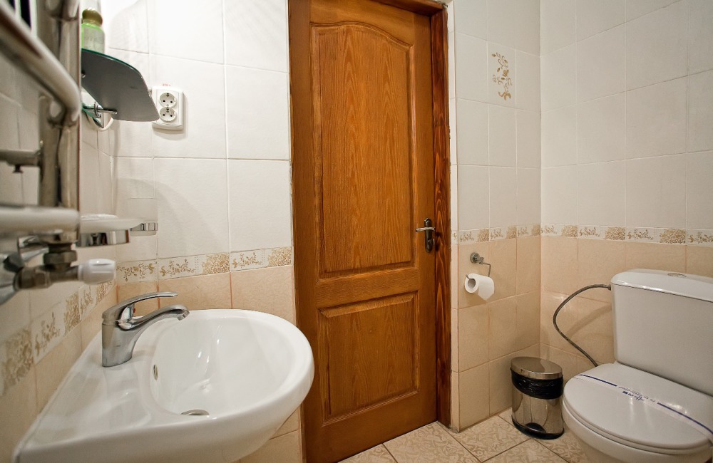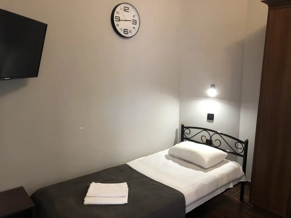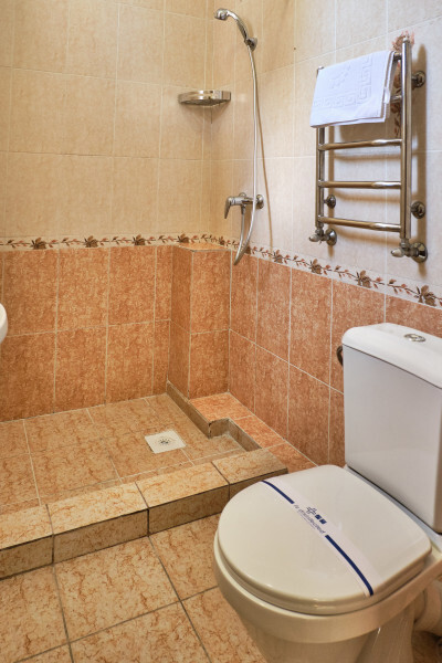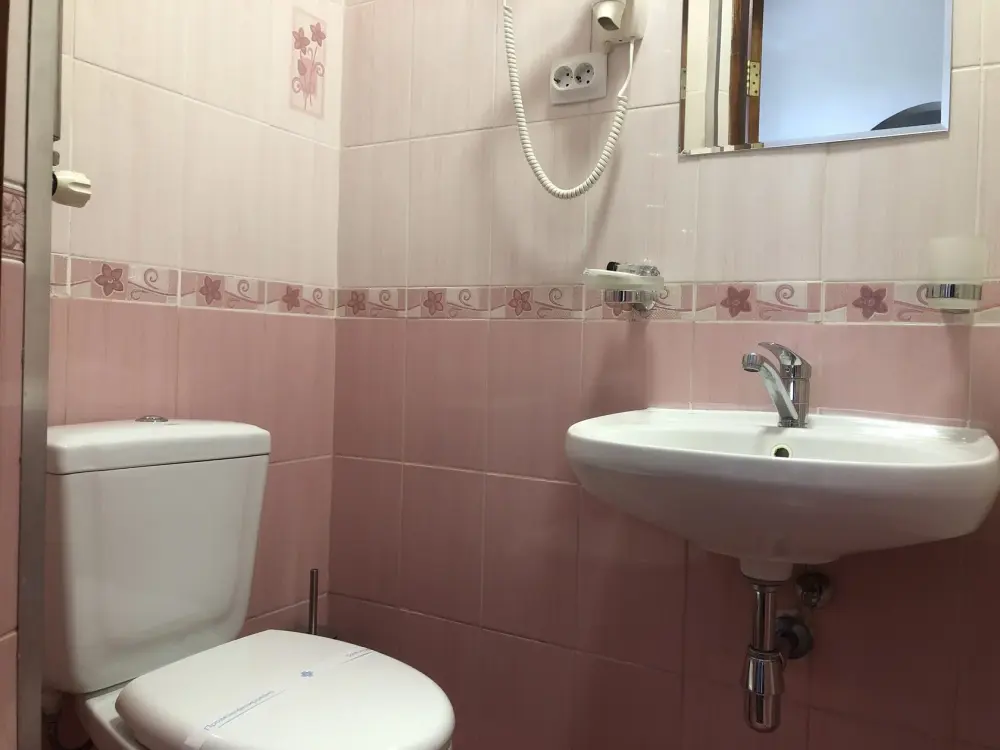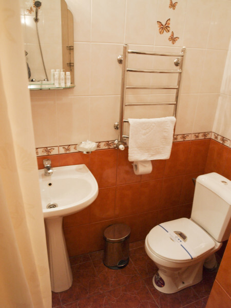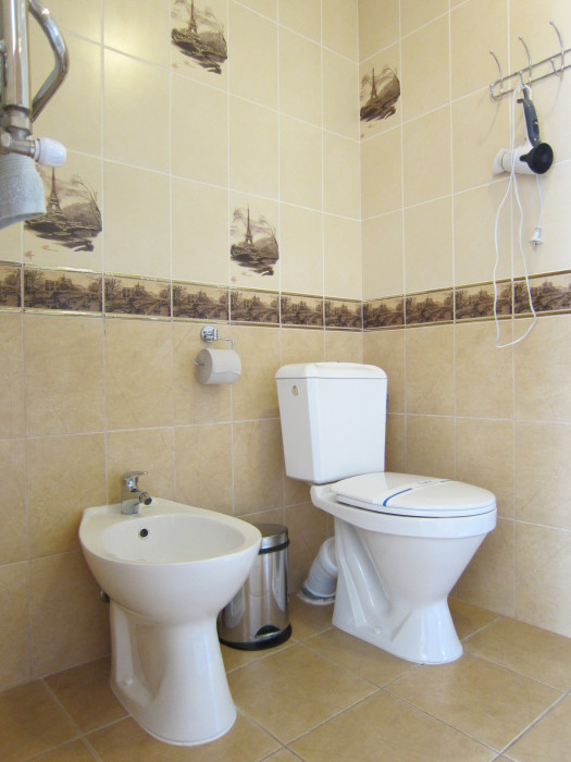 Большая двуспальная кровать или две односпальные. Кухня, санузел. Фен и одноразовые тапочки уже в номере.