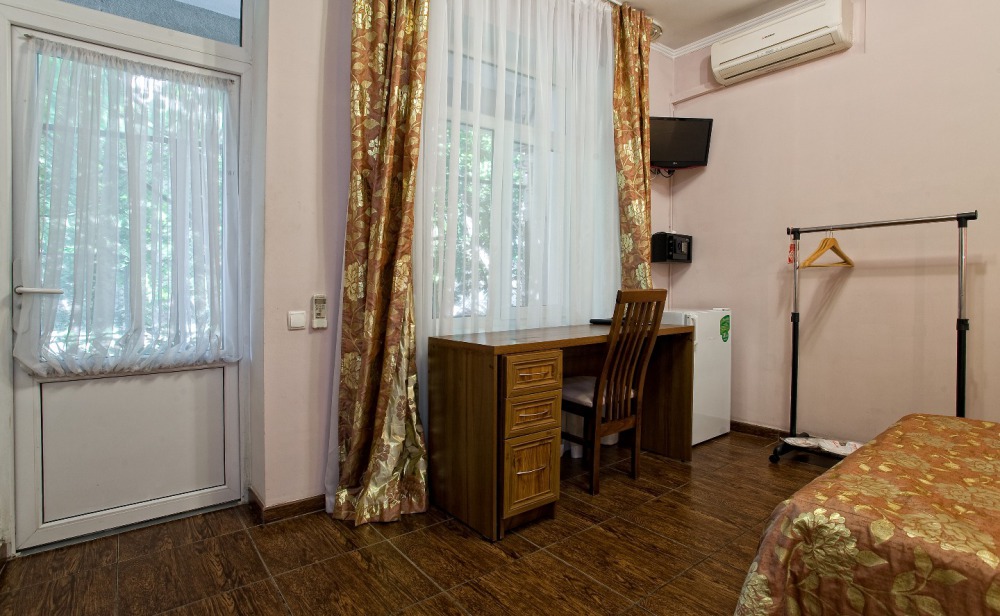 Единственный плюс отеля Анна это хорошая зона барбекю. Ещё близость овощного рынка в 500 метрах и супермаркет напротив отеля. В остальном, посоветовать отель не можем. Расположен на оживленной улице, шум от машин и утром, и вечером. До пляжа минут 30 пешком по загазованной улице или 2 остановки на троллейбусе и 15 минут пешком. Вся мебель разваливается, ручка над дверях холодильника сломана, полка холодильника тоже сломана, в результате разбилась бутылка дорогого вина. Номер такой маленький, что дверь комнаты полностью не открывается, а в туалет можно протиснуться только бочком.