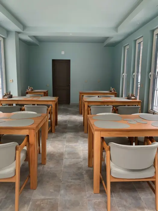 На территории расположено кафе с домашней кухней и собственной кондитерской.