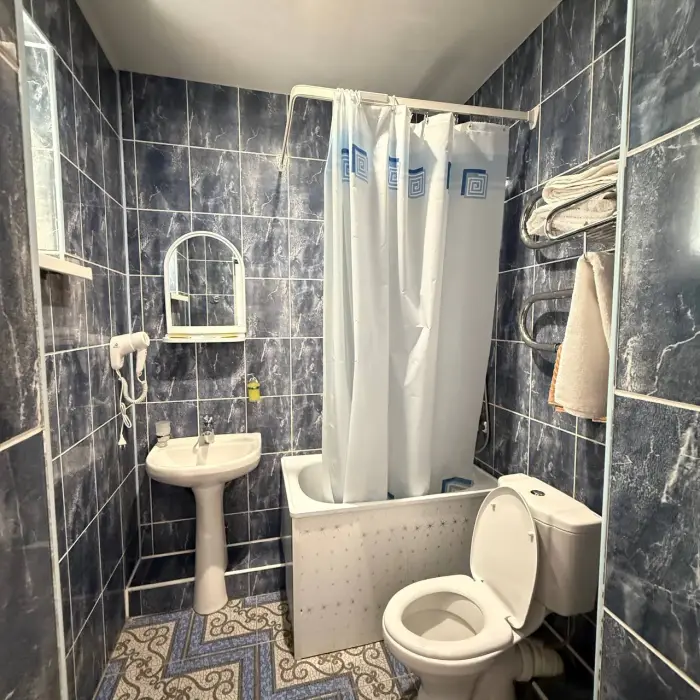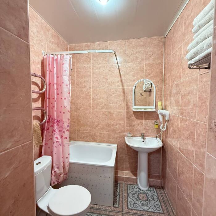 быстрый интернет, фен, холодильник, чайник, телевизор, сушилка для полотенец, шампунь, гель, мыло, фен, зубная щетка с пастой, тапочки, полотенца.