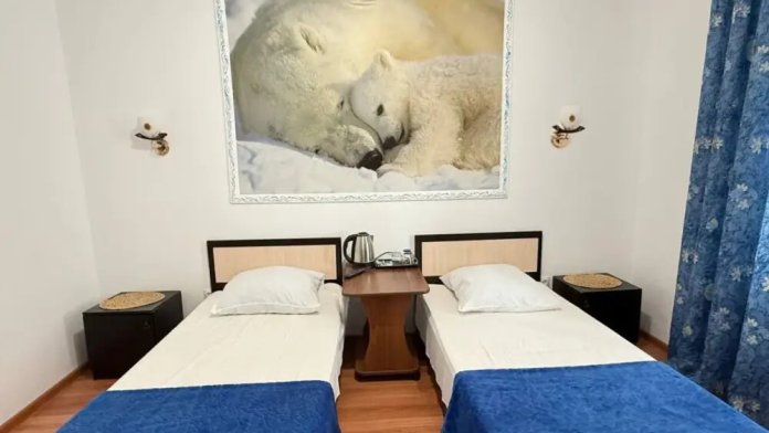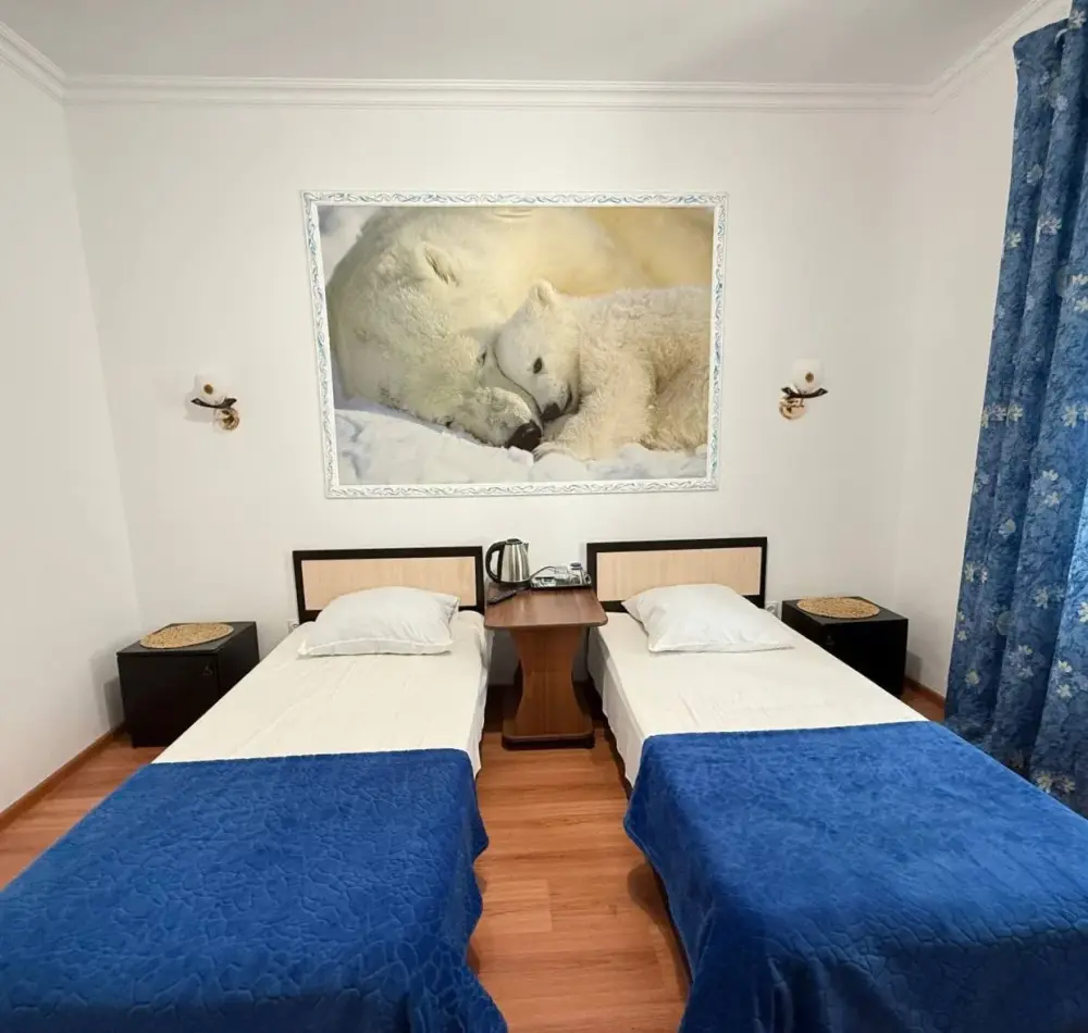 В номере: две комфортные односпальные кровати,
