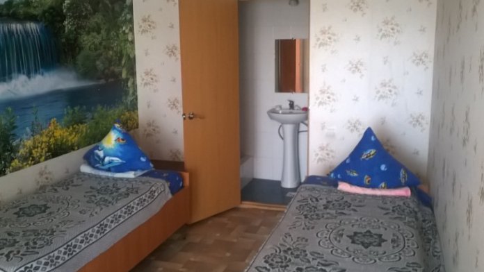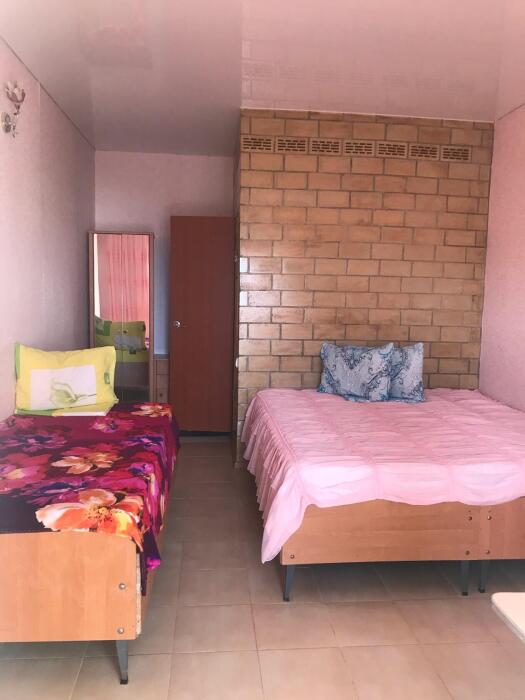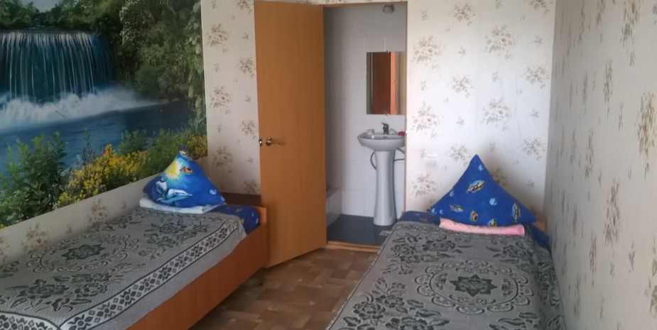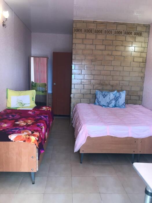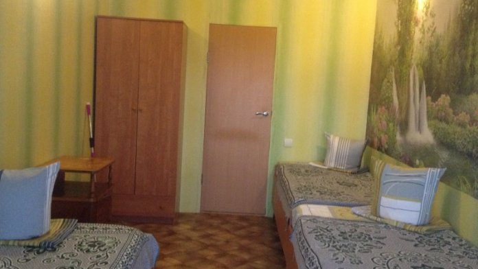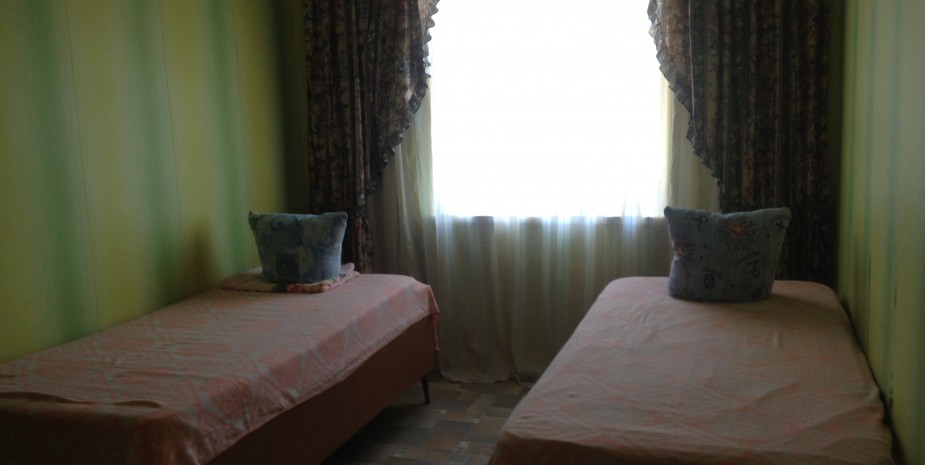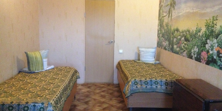 Три односпальные кровати, шкаф, тумбочка, санузел.