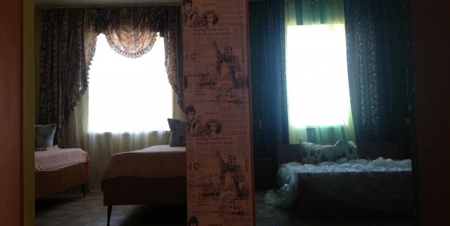 Первая спальня: двуспальная кровать, комод, прикроватные тумбочки. Вторая спальня: две односпальные кровати, шкаф, журнальный столик. Прихожая: кровать, стол, санузел.