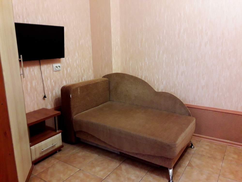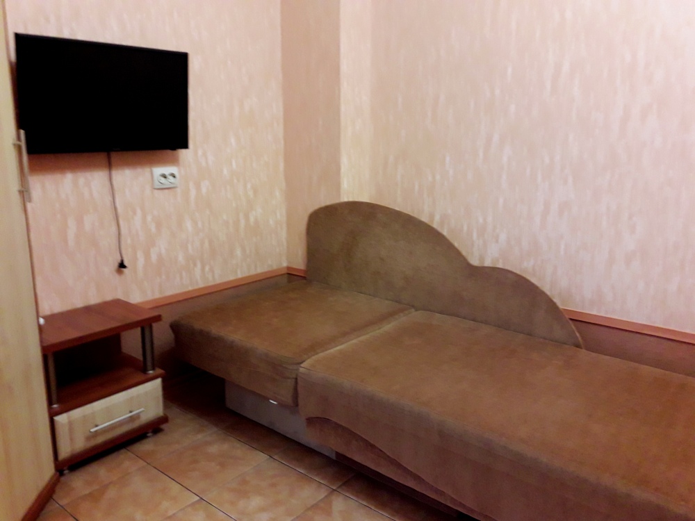 Есть все необходимое: двух спальная кровать, раскладной диван-тубус (три полноценных спальных места), шкаф, телевизор, кондиционер, кухонный уголок, посуда, холодильник, электрическая плита, электро чайник, микроволновая печь, стиральная машина, утюг, фен, wi-fi. Горячая и холодная вода круглосуточно. При входе столик и стулья.